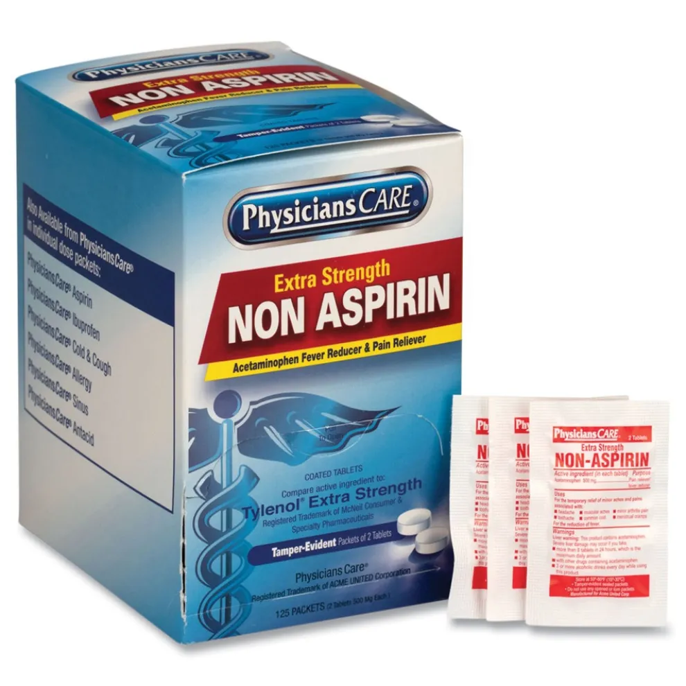 First Aid Only 40800-001 XStrength Non-Aspirin Acetaminophen Pain Relievers/Medicines (250/Box)