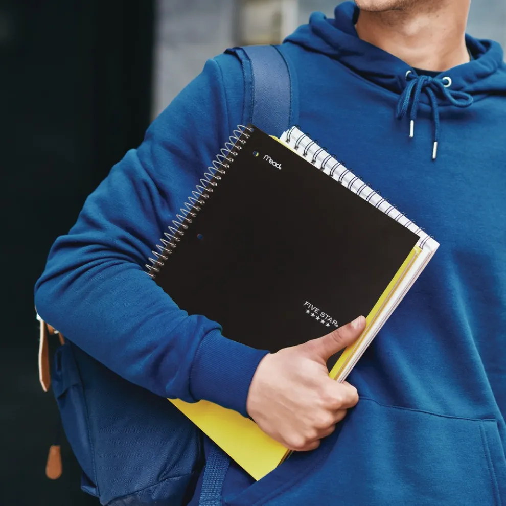 Lasts all year. Guaranteed! Durable, water-resistant poly covers protect your notes all year. Reinforced, tear-resistant divider pockets keep your loose sheets together. Spiral Lock wire binding prevents coil snag, and high-quality paper provides excellent ink-bleed resistance. Easily inserts into any three-ring binder (sold separately). Scan, study and organize your notes with the Five Star Study App. Create instant flashcards and sync your notes to Google Drive to access them anywhere from any device.