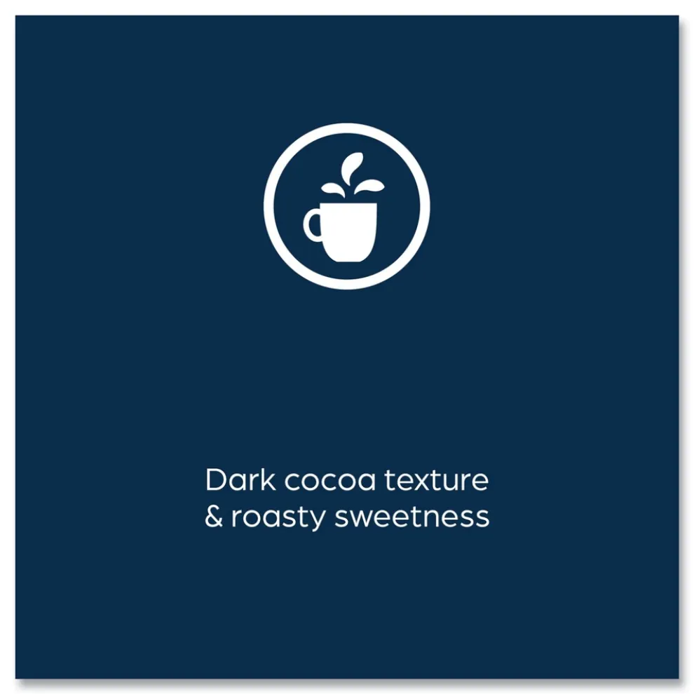 Dark cocoa, roasty sweetness flavors this dark roast.