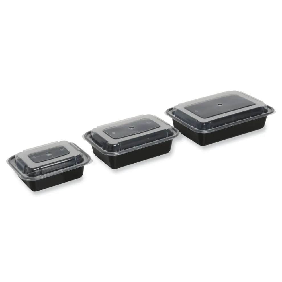 GEN FCPP-BC-24RECT 7.48 in. x 5.03 in. x 2.48 in. 24 oz. Plastic Microwavable Food Container with Lid – Rectangular Black/Clear (150/Carton)