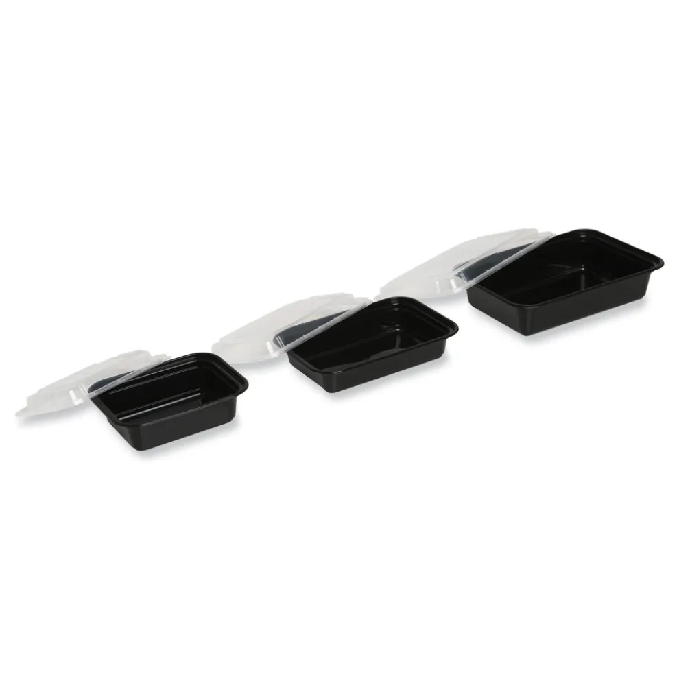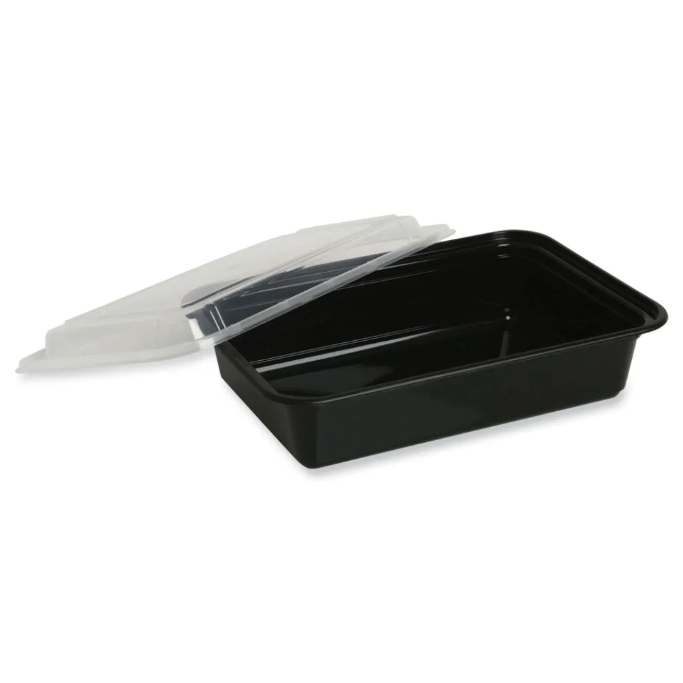 Black base with a clear lid, these food containers are the perfect option for pick-up, delivery or take out. Lid is separate piece. Items are microwave safe.