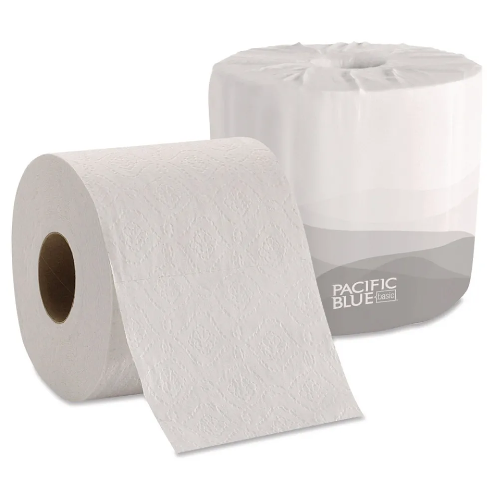 (80 Rolls/Carton) 1-Ply Pacific Blue Basic Embossed Septic Safe Bathroom Tissue – White – 1988101