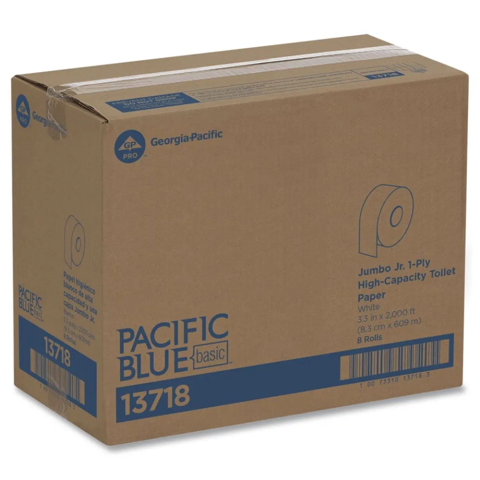 Georgia Pacific Professional 13718 2000 ft. 1 Ply Jumbo Jr. Bath Tissue Rolls – White (8/Carton)