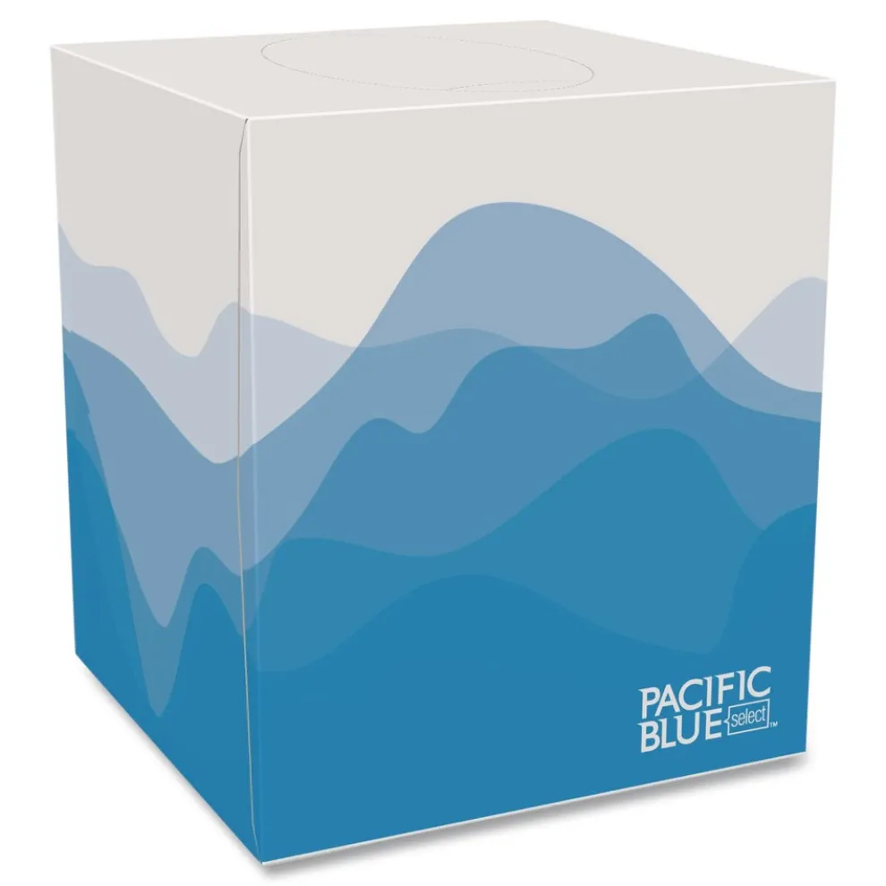 Our Pacific Blue Select Facial Tissue is soft, absorbent, and ideal for high traffic areas. This facial tissue offers a high quality, cost-effective solution that guests, tenants, patients, customers, and employees will appreciate. It is sustainably made. Strong facial tissues provide two plies of softness for runny noses. Absorbent and sturdy. Decorative cube box with floral pattern brightens up any office. Color contrast sheets provides an easy indication of when it is time to change the tissue box.