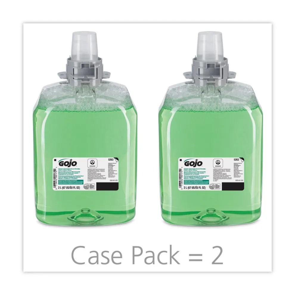 GOJO Industries 5263-02 2000 mL Refill Green Certified Foam Hair and Body Wash – Cucumber Melon (2/Carton)