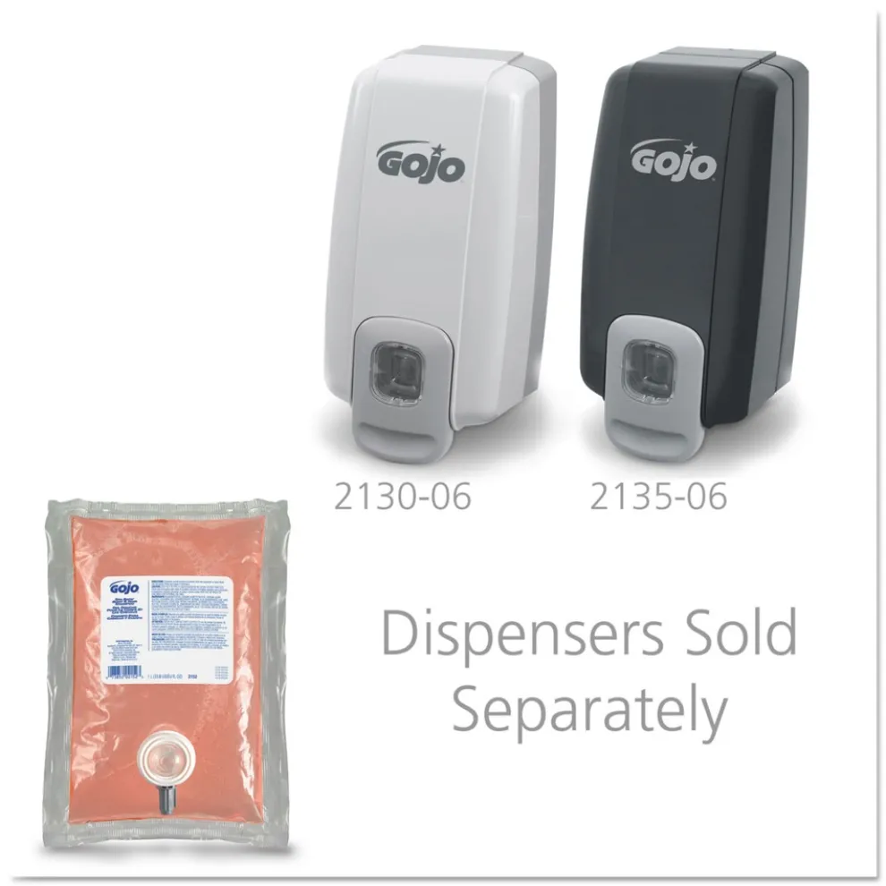 Fits GOJO® NXT Space Saver™ dispenser (sold separately) which allows users to switch to a fresh refill cartridge when one is empty. Ideal for both high-traffic areas and areas that are serviced infrequently. Refills include a new dispensing valve. Enriched lotion deodorant soap for hair, hands and body. Pleasant herbal fragrance.