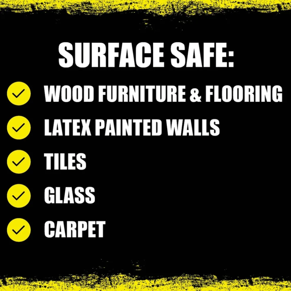 Safe for use on latex painted walls, wallpaper, wood flooring and furniture, laminate flooring and countertops, carpet, ceramic tile, glass, stainless steel and granite