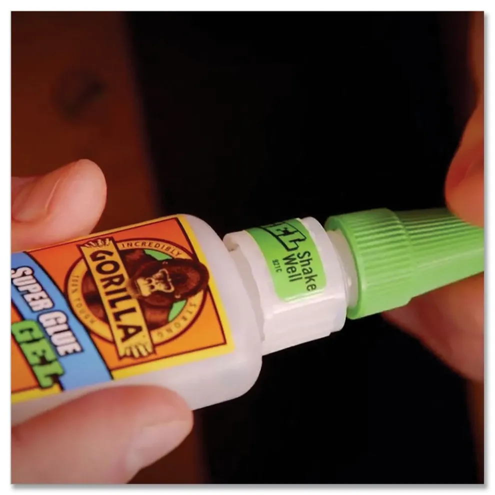 Gorilla Super Glue Gel is an easy-to-use, thicker and more controlled formula great for multiple surfaces and vertical applications. Impact tough and reinforced to increase impact resistance and strength. Anti-clog cap keeps glue from drying out. Versatile and bonds plastic, wood, metal, ceramic, rubber, leather, paper and more. Fast setting and dries in 10-45 seconds with no clamping required.