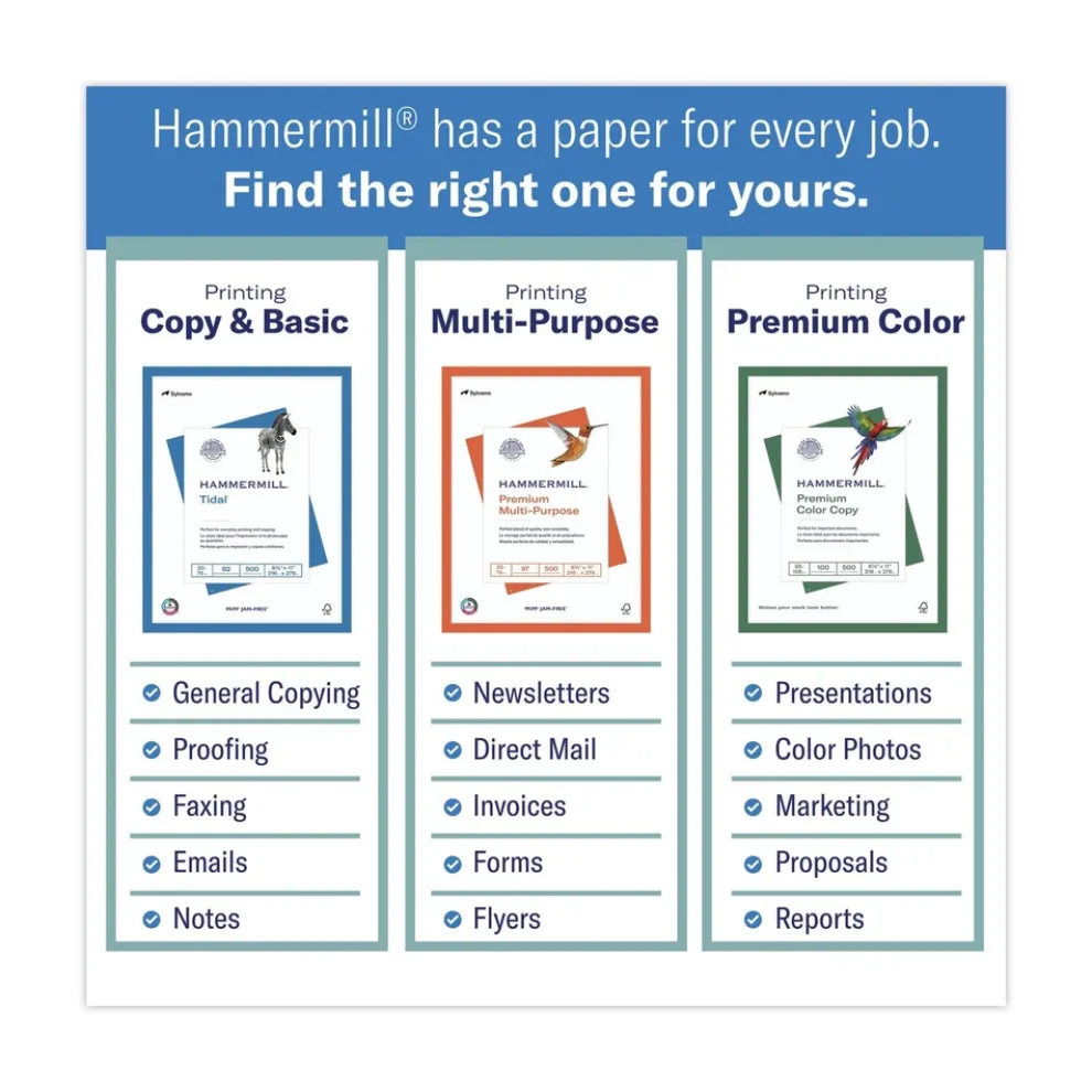 Premium color copy printer paper features an ultra-smooth surface with high brightness for colors that will make your color copies, proposals and presentations stand out. Heavier weights lend your work a professional quality. Engineered to work on all digital presses, color laser printers and color copiers. Offers a more stable surface for heavier toner applications and brilliant color. Backed by the 99.99% Jam-Free Guarantee. Acid-free material prevents yellowing over time to ensure a long-lasting appearance.