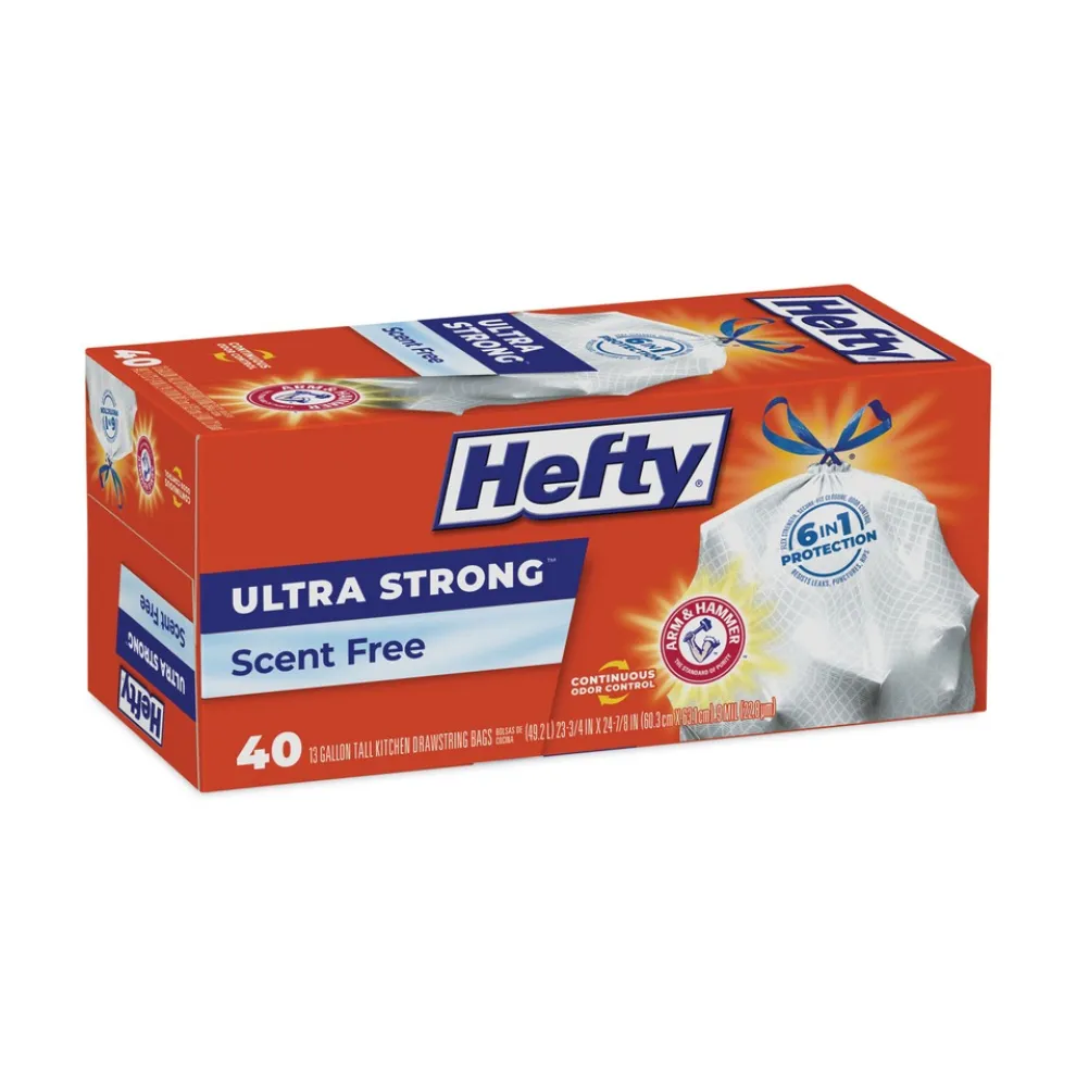 Hefty’s #1 value tall kitchen trash bags feature reliable Hefty strength at a great price