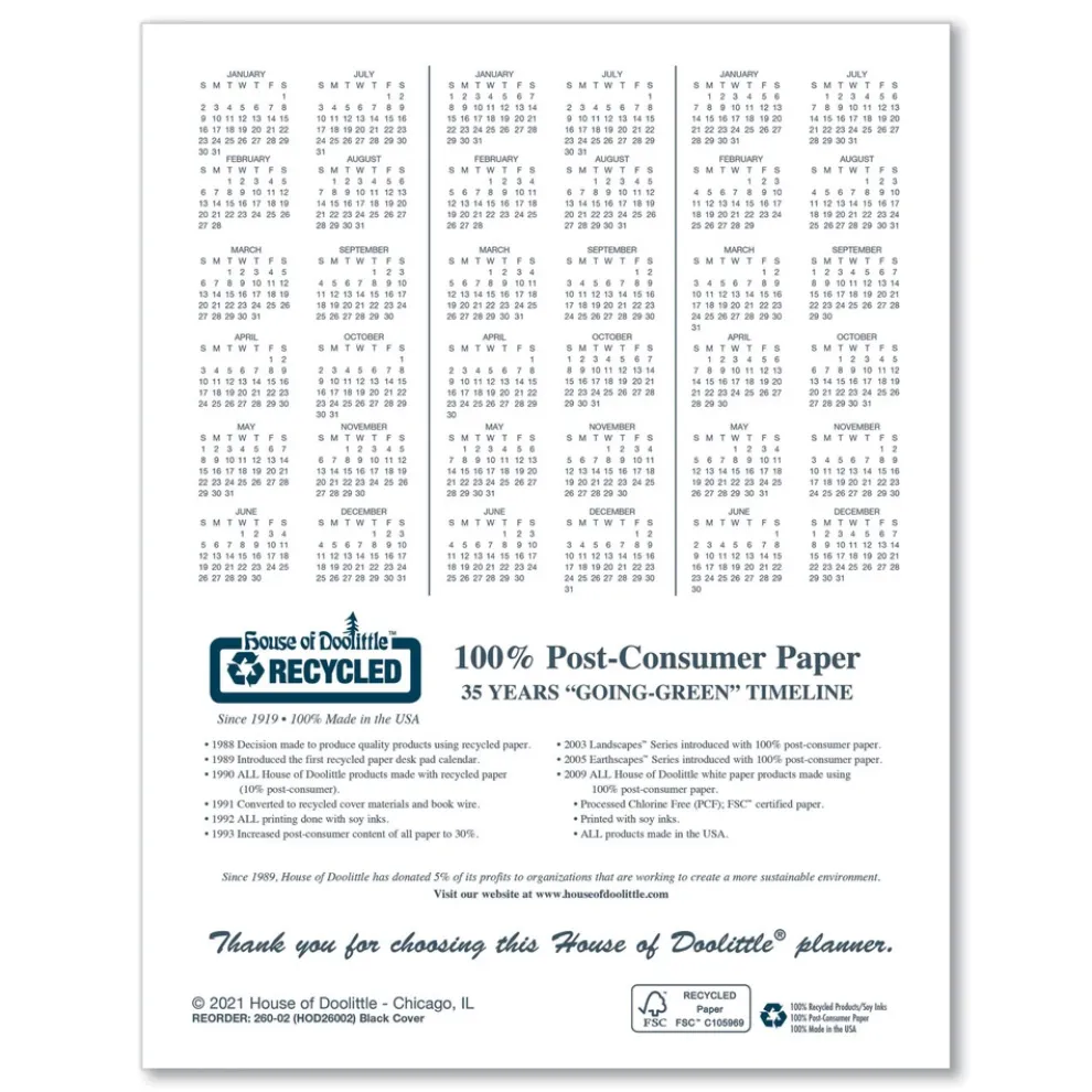House of Doolittle 2606-02 10 in. x 7 in. 14-Month (Dec 2025-Jan 2027) Recycled Ruled Planner with Leatherette Cover – Black Cover