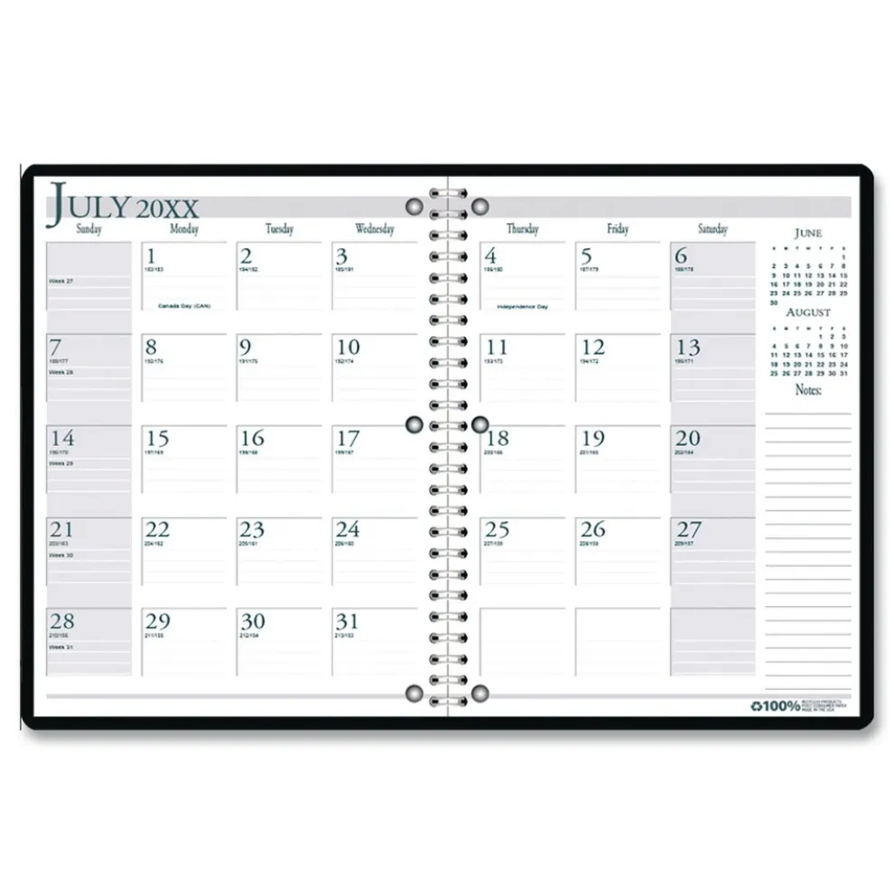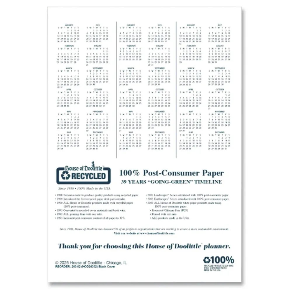 House of Doolittle 26302 11 in. x 8.5 in. 14-Month (Jul 2025-Aug 2026) Wirebound Academic Monthly Planner – Black Cover