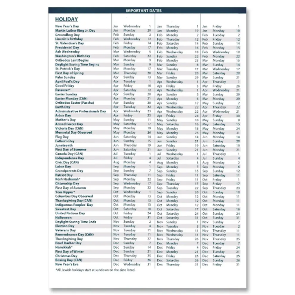 Attractive, flexible and convenient with a thoroughly professional appeal-do more with this Three-Hole Punched Wirebound Academic Monthly Planner. Featuring a letter-size, pre-punched format, its attractive leatherette cover is equally at home on your desk and inside your three-ring binder. Each two-page per month spread provides ruled daily blocks, a ruled notes column, a count of days-past and days-to-come as well as past- and future-month reference calendars, everything you need to keep track every important event throughout the school year. Twin-wire binding allows the planner to lay flat when open while minimizing the potential for snags on bags and clothing. Interior, double-sided storage pocket accommodates loose materials.
