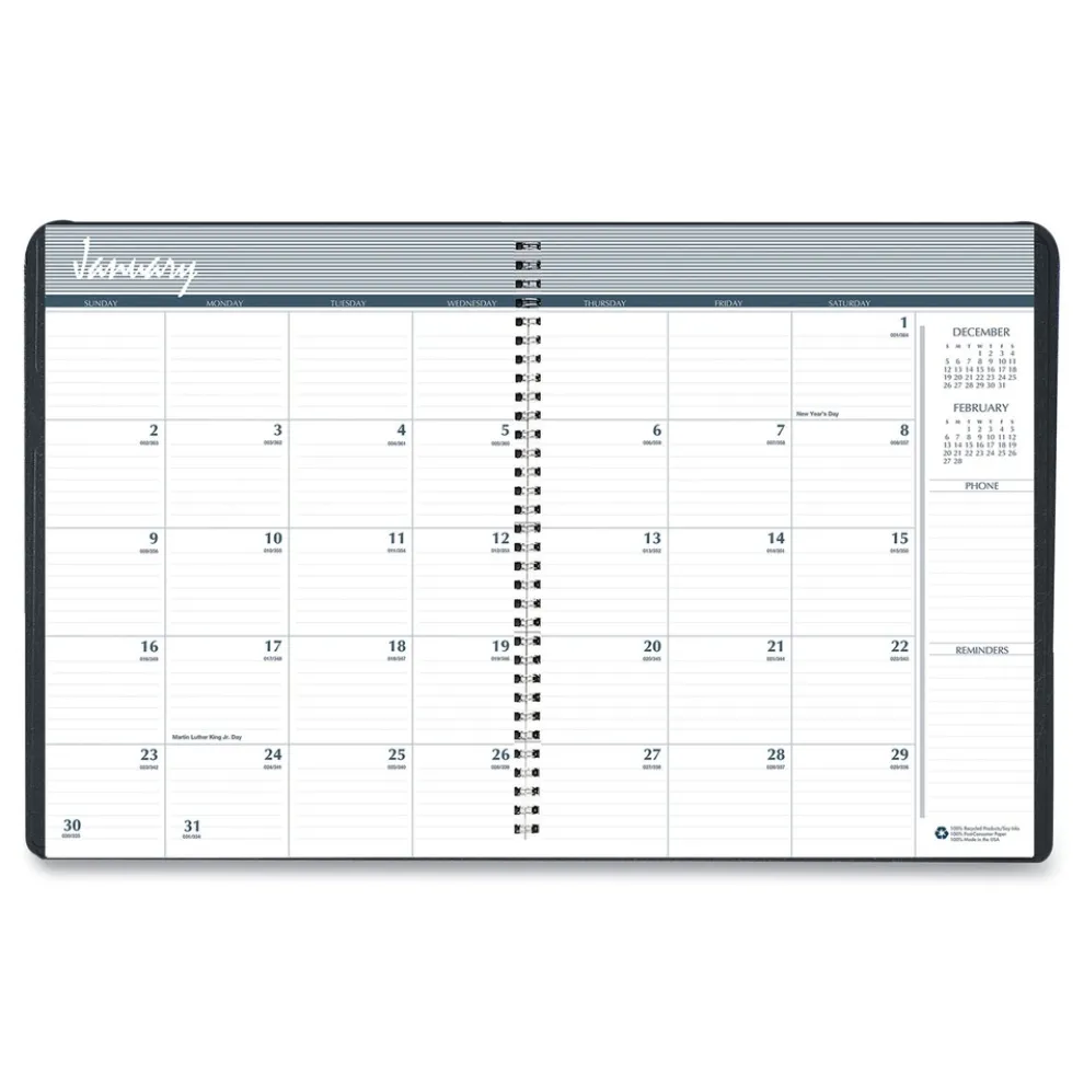 House of Doolittle 2620-02 11 in. x 8.5 in. 24-Month (Jan 2026-Dec 2027) Recycled Ruled Monthly Planner – Black Cover