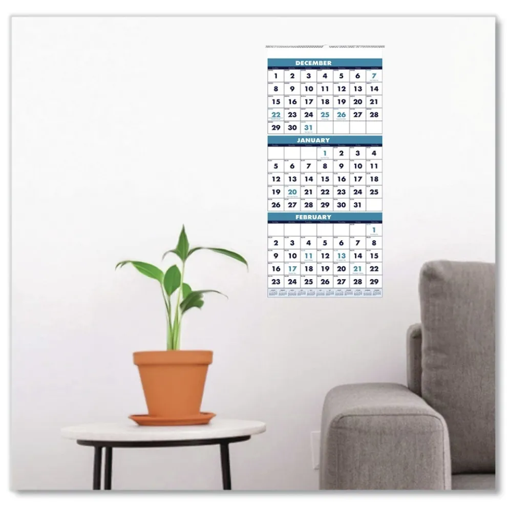 14-Month: Dec 2025 to Jan 2027 12.25 in. x 26 in. Vertical Orientation Recycled Three-Month Format Wall Calendar – White Sheets – 3640