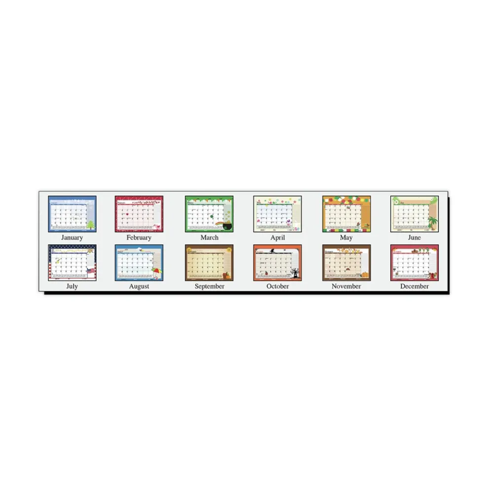 Each month features a different lively design depicting the seasons and holidays for that month.