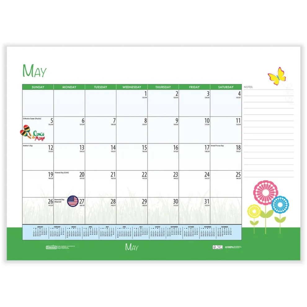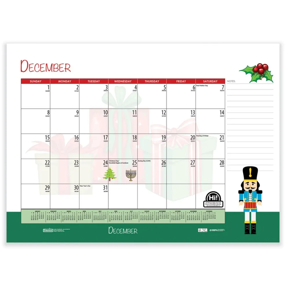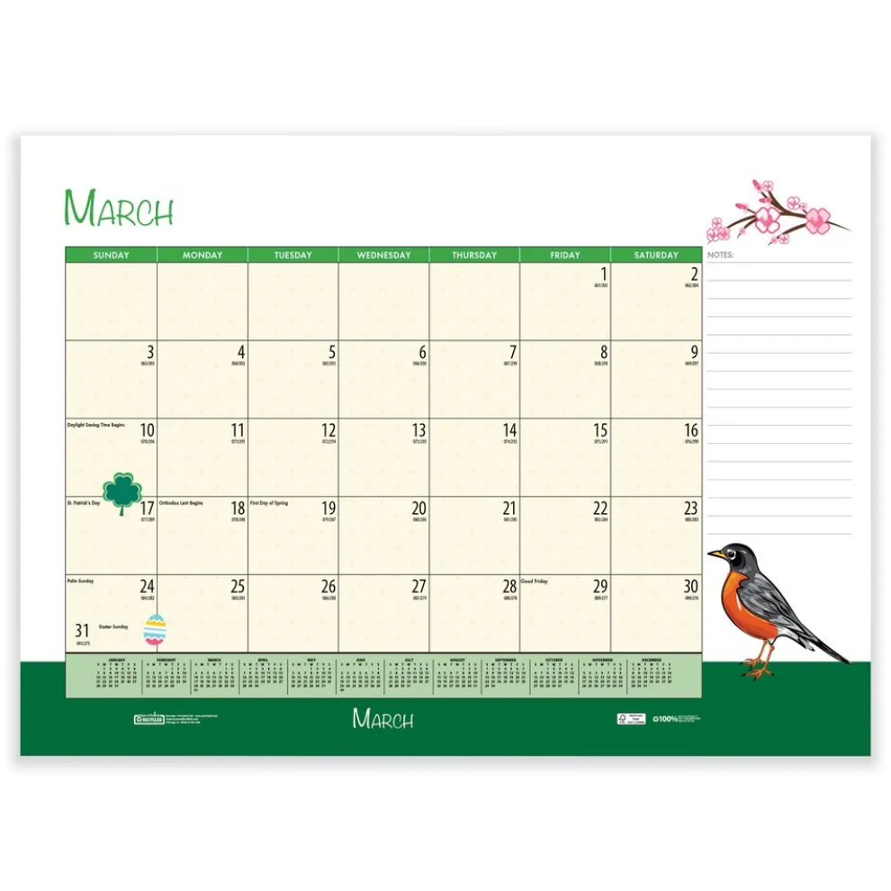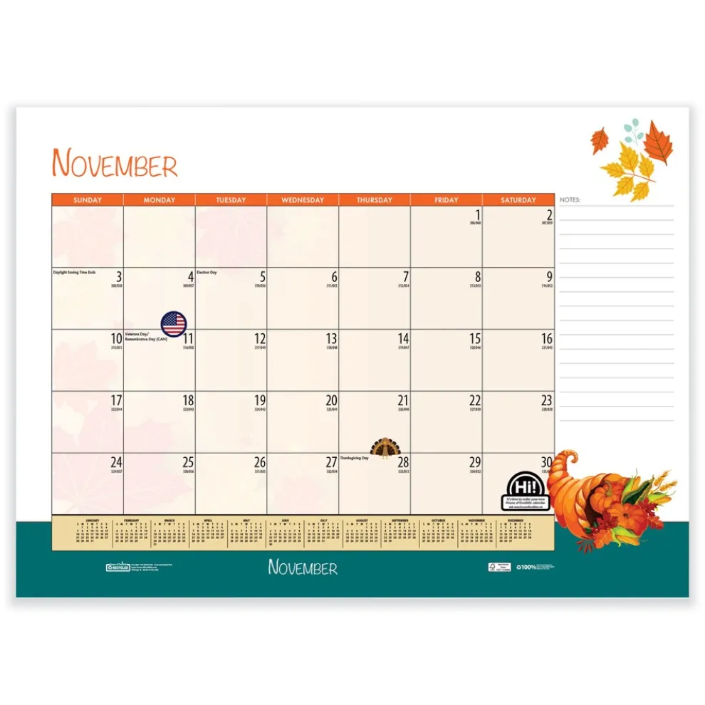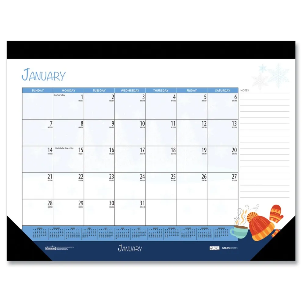 22 in. x 17 in. 12-Month (Jan-Dec) 2026 Recycled Desk Pad Calendar – Illustrated Seasons Artwork/Black Binding/Corners – 139