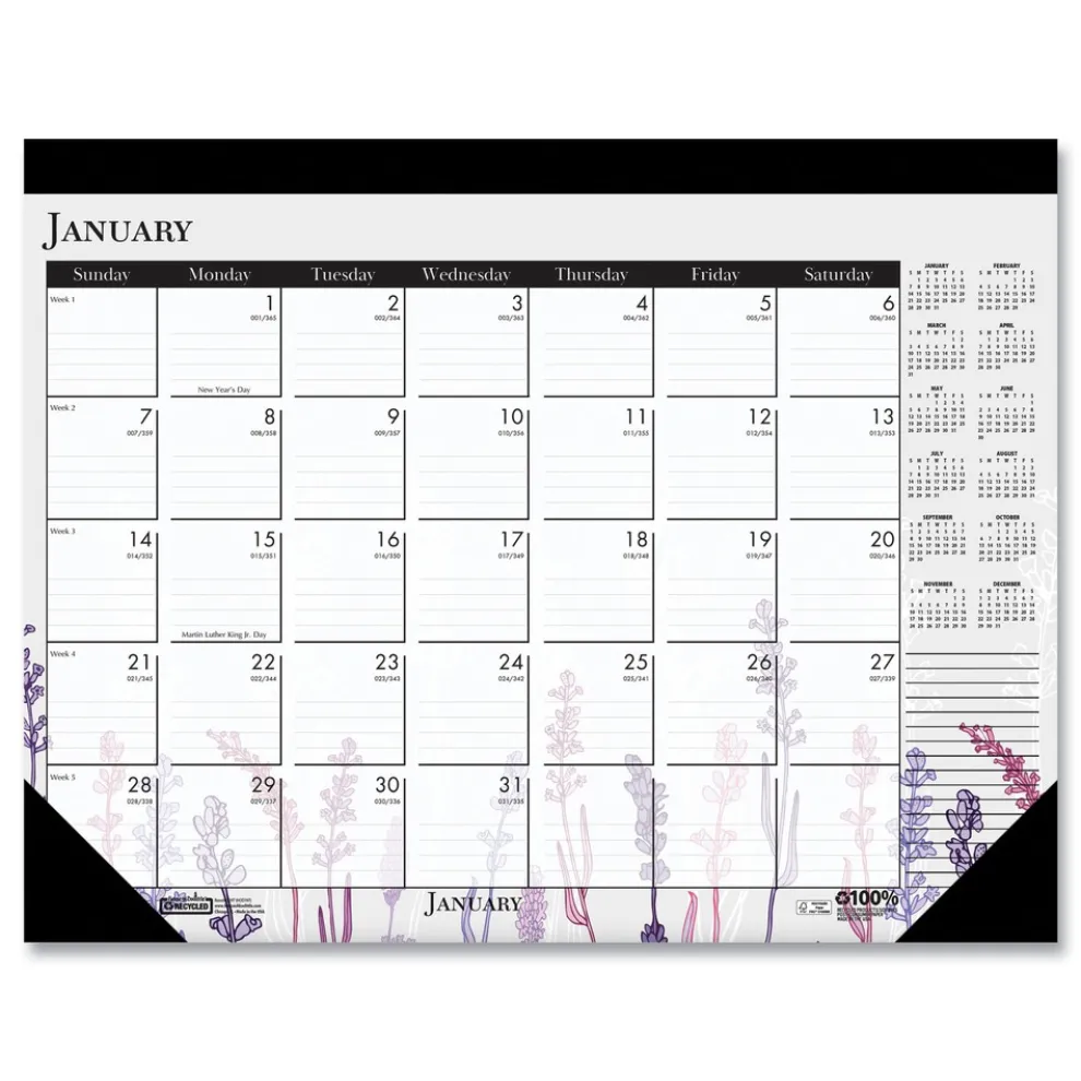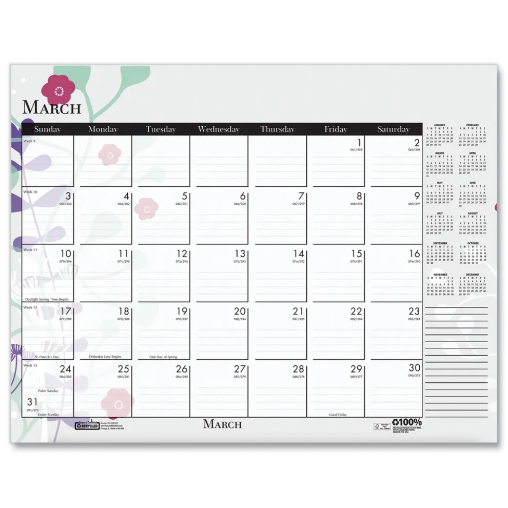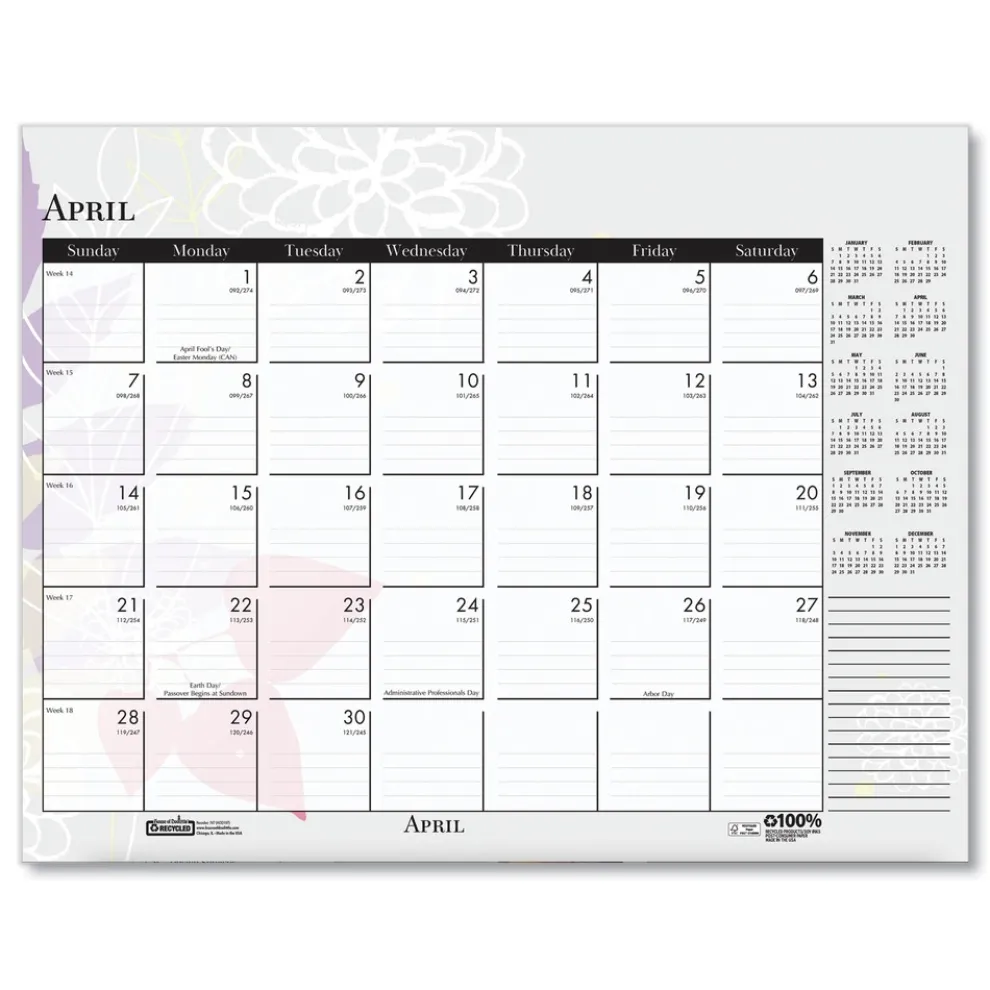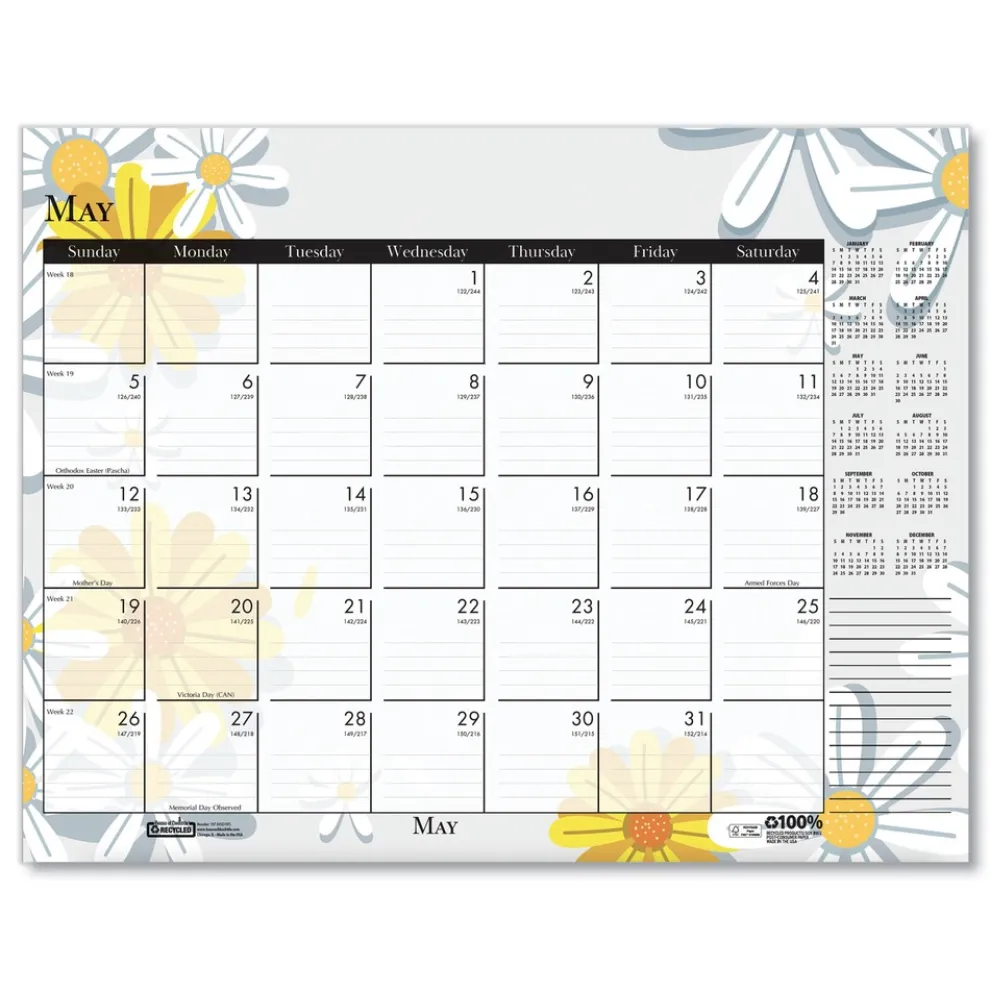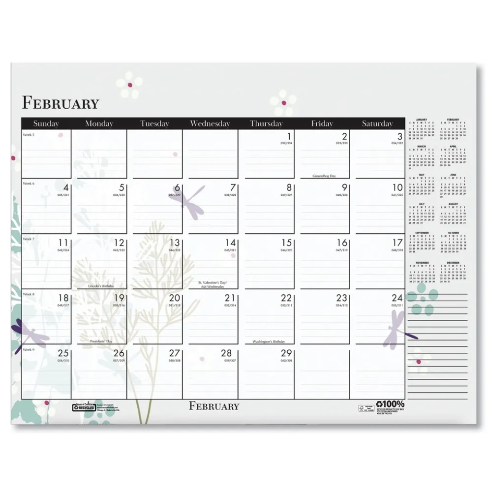House of Doolittle 197 22 in. x 17 in. 12-Month (Jan-Dec) 2026 Recycled Desk Pad Calendar – Wild Flowers Artwork