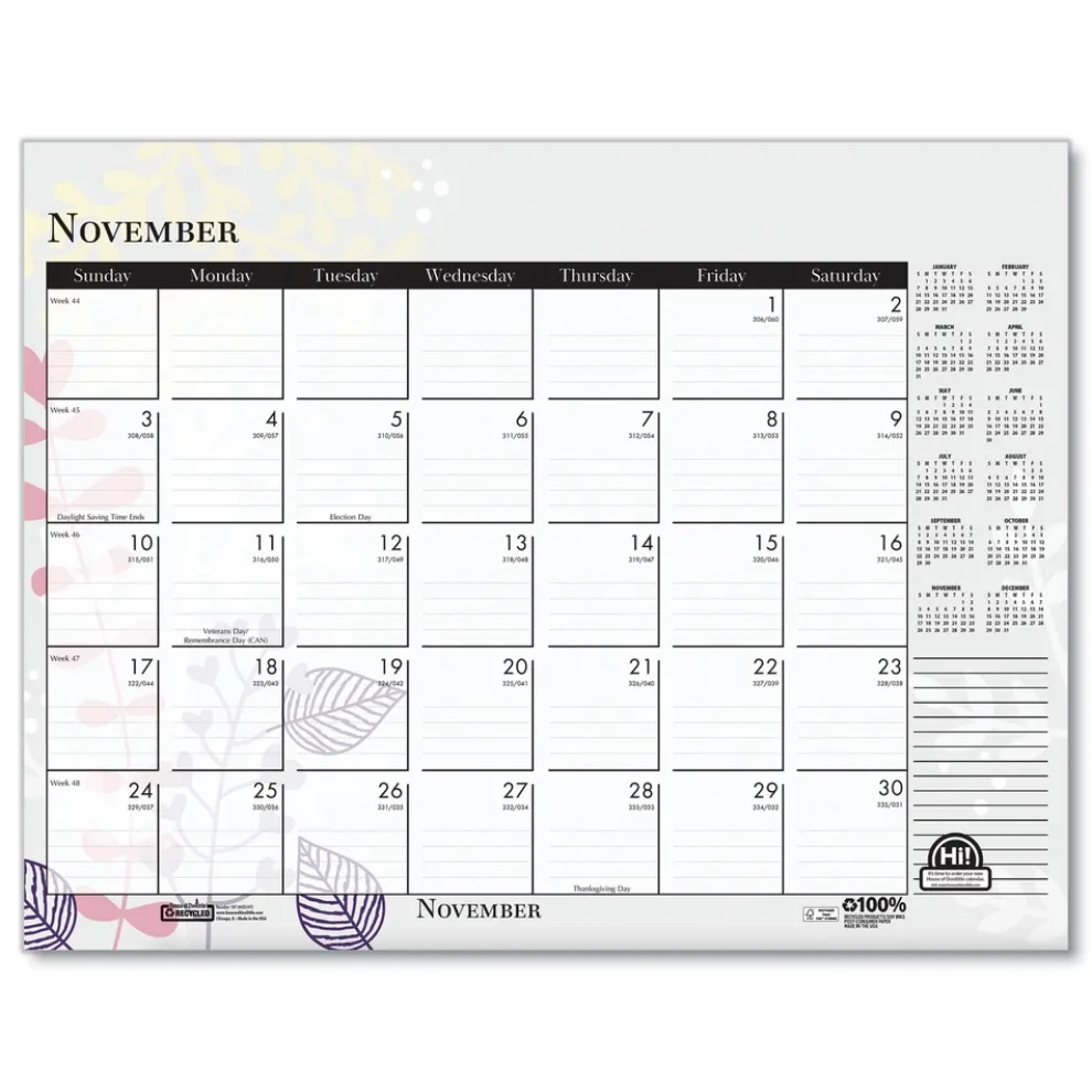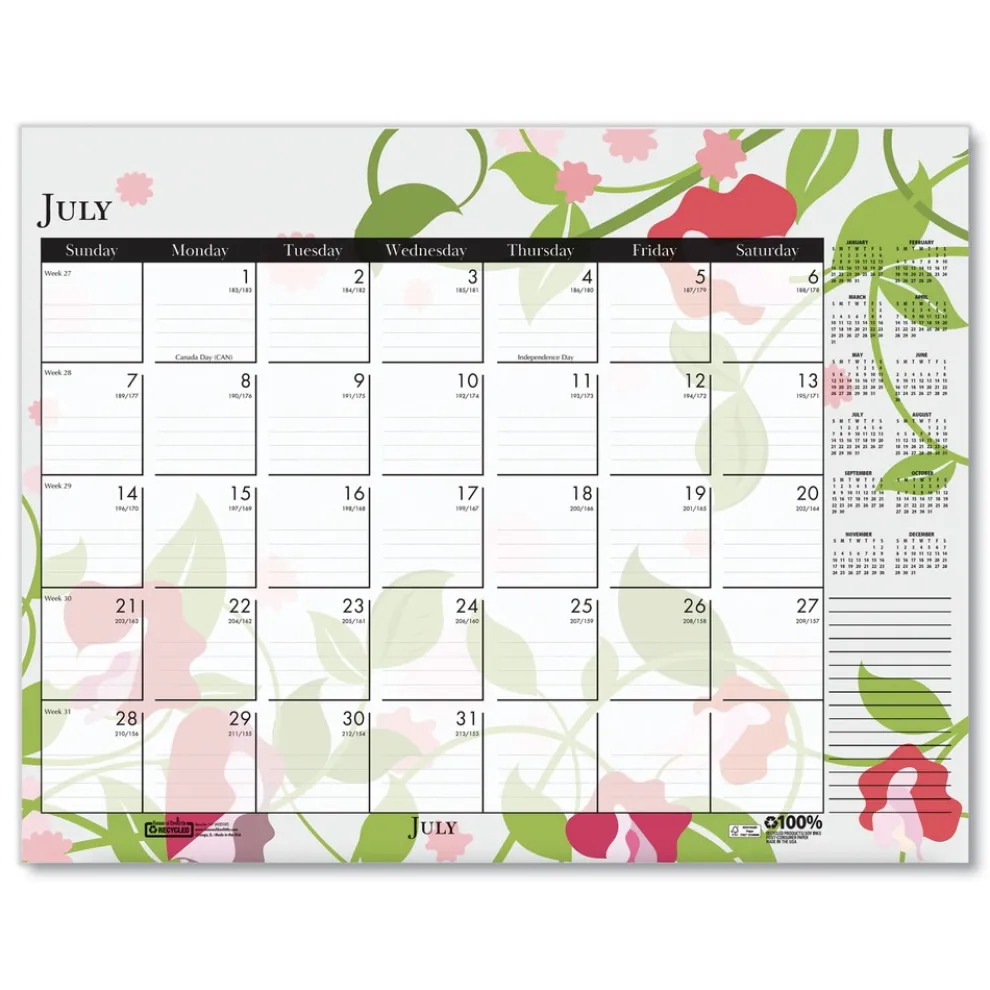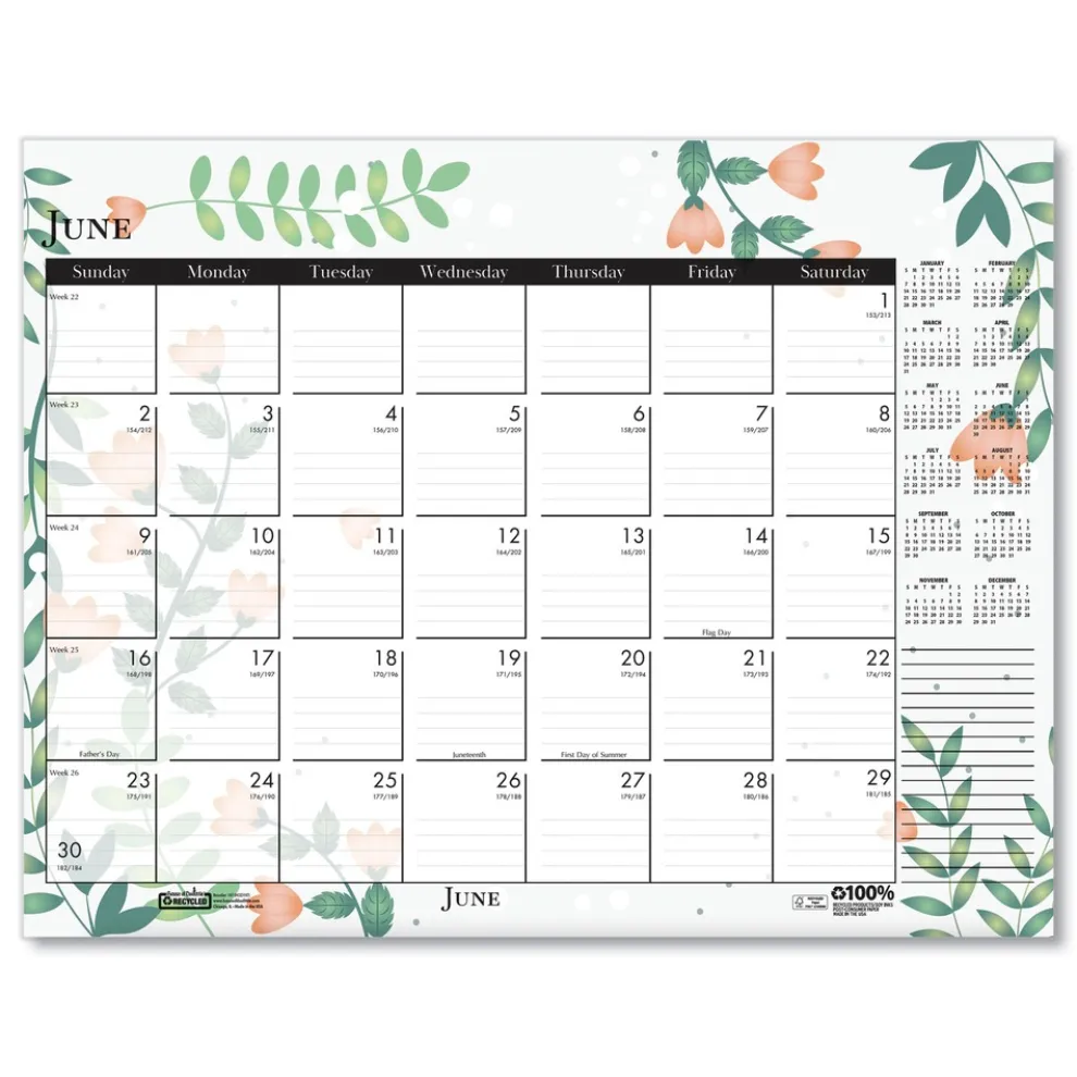 22 in. x 17 in. 12-Month (Jan-Dec) 2026 Recycled Desk Pad Calendar – Wild Flowers Artwork – 197