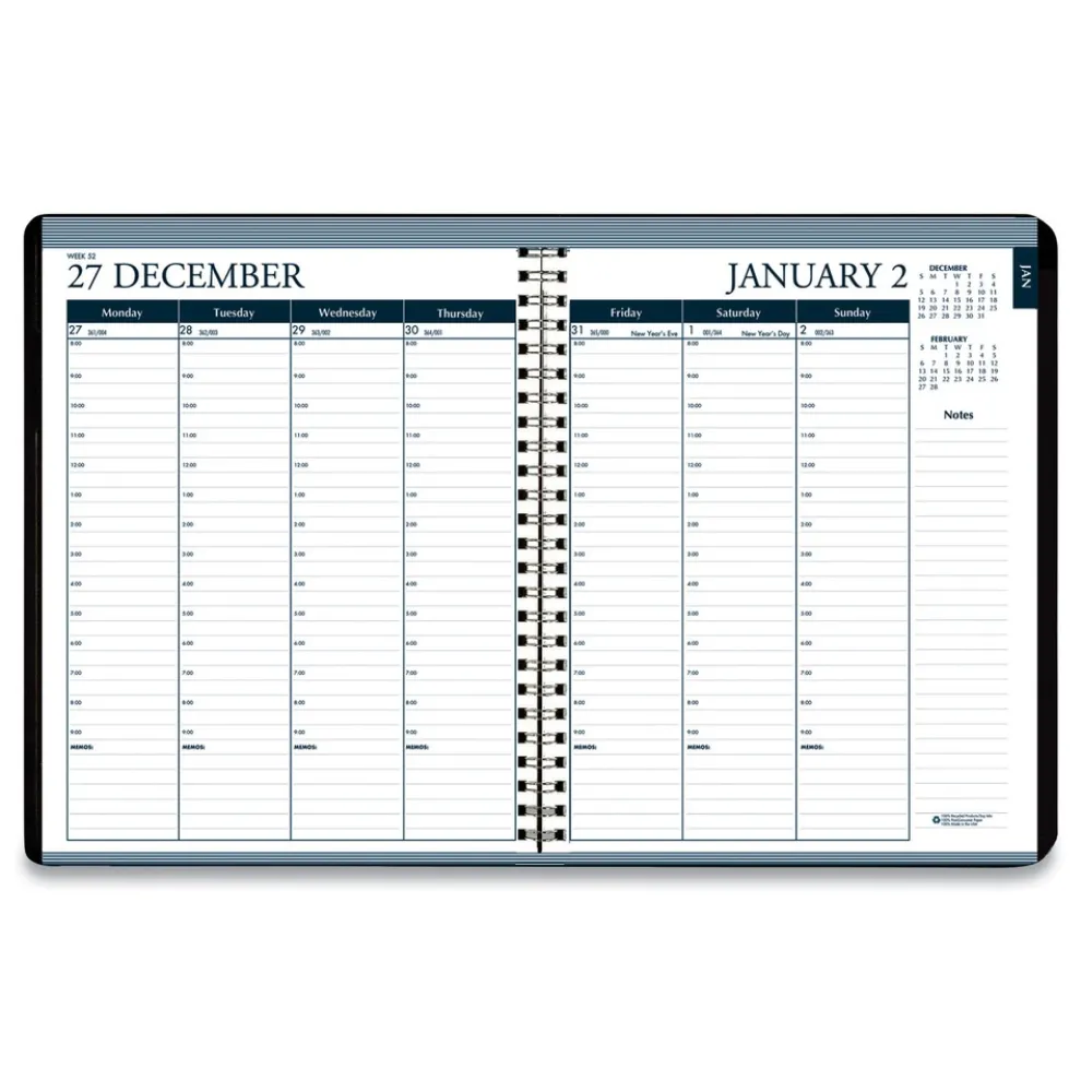 8.75 in. x 6.88 in. 12-Month (Jan-Dec 2026) Recycled 7-Day Planner – Black Cover – 286802