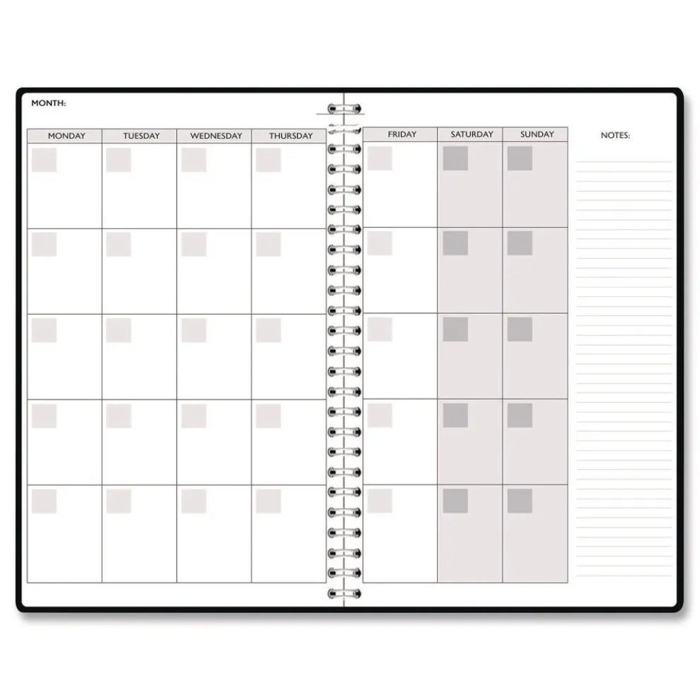 This non-dated weekly and monthly planner is ideal for uninterrupted easy planning. Both monthly and weekly two-page spread non-dated sections are to create your own planner dates. There is a large notes section to keep you organized and motivated. Also includes class schedule and note pages. The planner is spiral boundand features a two-piece cover that is waterproof, tear-proof and weather-resistant to withstand the daily use throughout the year. Made entirely of recycled materials.