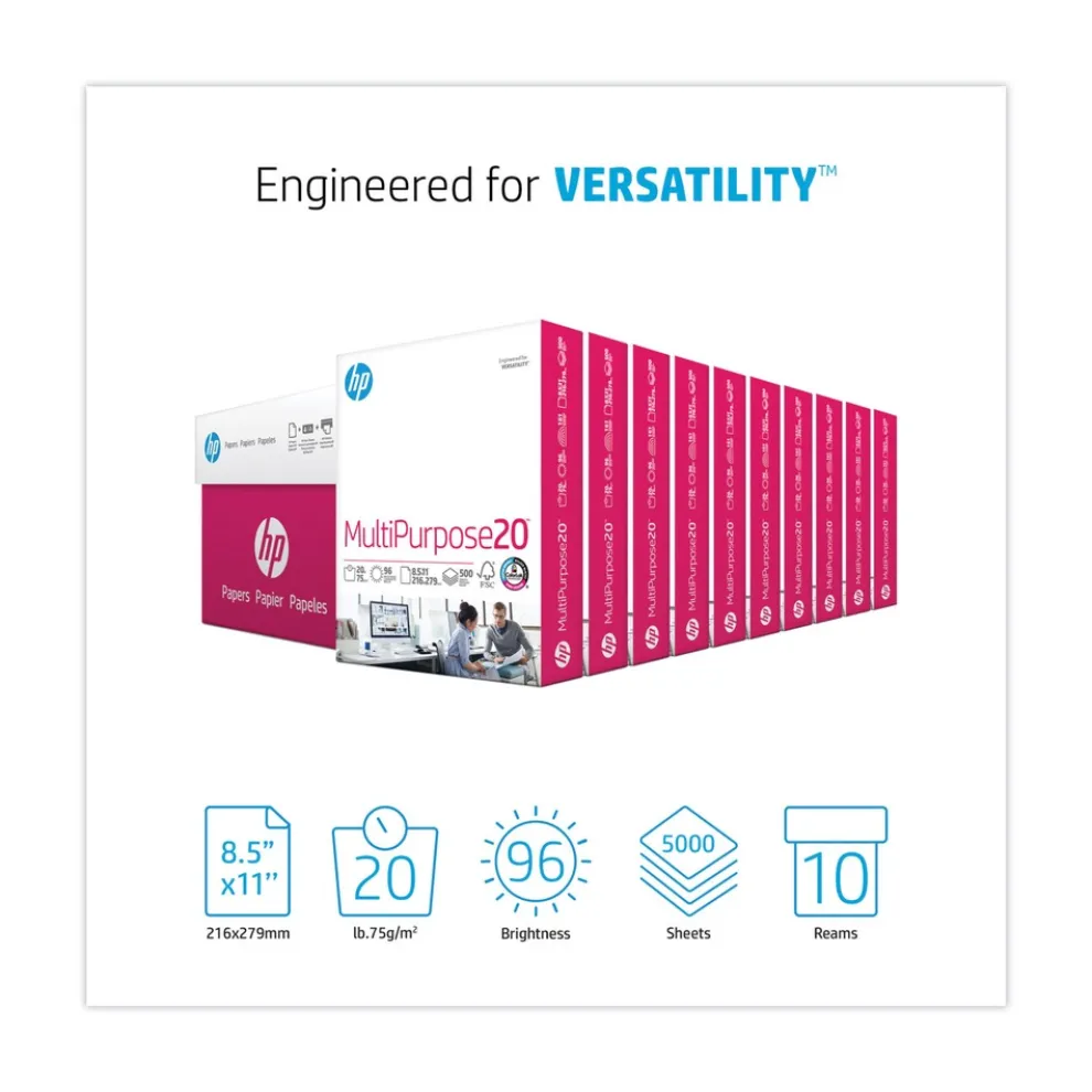 HP Papers 112000- MultiPurpose20 8.5 in. x 11 in. Paper – 96 Bright White (500 Sheets/Ream, 10 Reams/Carton)
