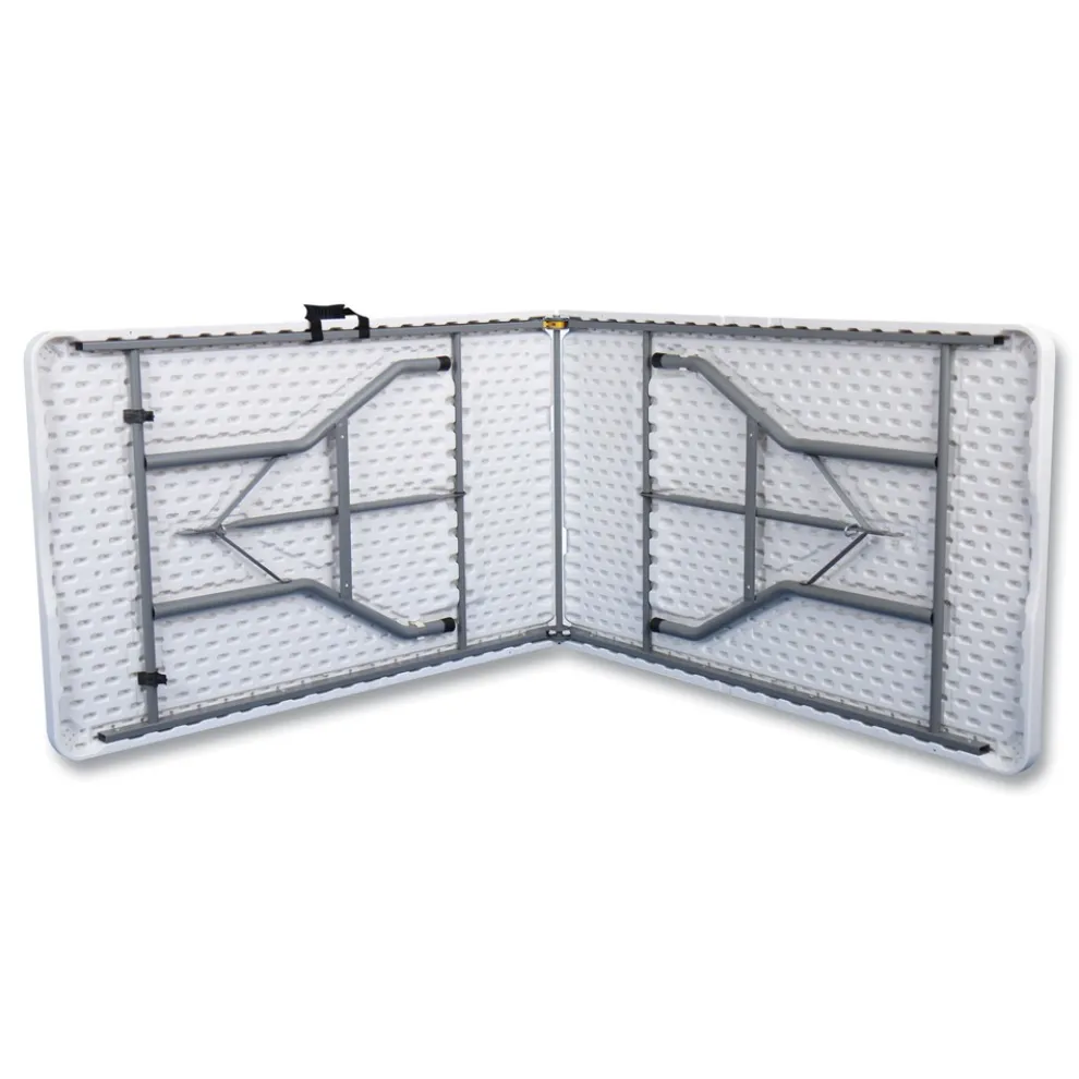 Sturdy in design, contemporary in appearance and surprisingly lightweight, Iceberg Resin-Top Bifold Tables feature a built-in carry handle and a convenient bifold format, where the tabletop folds in half while the legs fold up, to deliver an option that transports easily and stores compactly. Waterproof, scratch- and dent-resistant, the blow-molded, high-density polyethylene tabletop features rounded corners and soft-radius edges which both take away the sharp angles while allowing tablecloths to hang more neatly. Durable powder-coated steel legs with bracing bars ensure a solid, sturdy foundation. If you’re looking for an indoor/outdoor table that’s easy to set-up and take-down for offices, schools, trade shows, fairs, impromptu marketplaces or simply for outdoor parties, weddings and barbequesthese bifold tables might just be ideal.