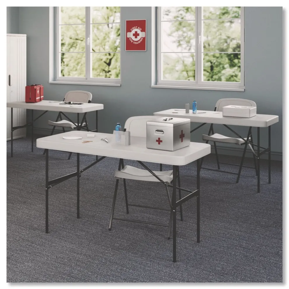 Iceberg 64003 Rough n Ready 15.25 in. Seat Height Supports Up to 350 lbs. Commercial Folding Chair – Platinum Seat/Back, Black Base