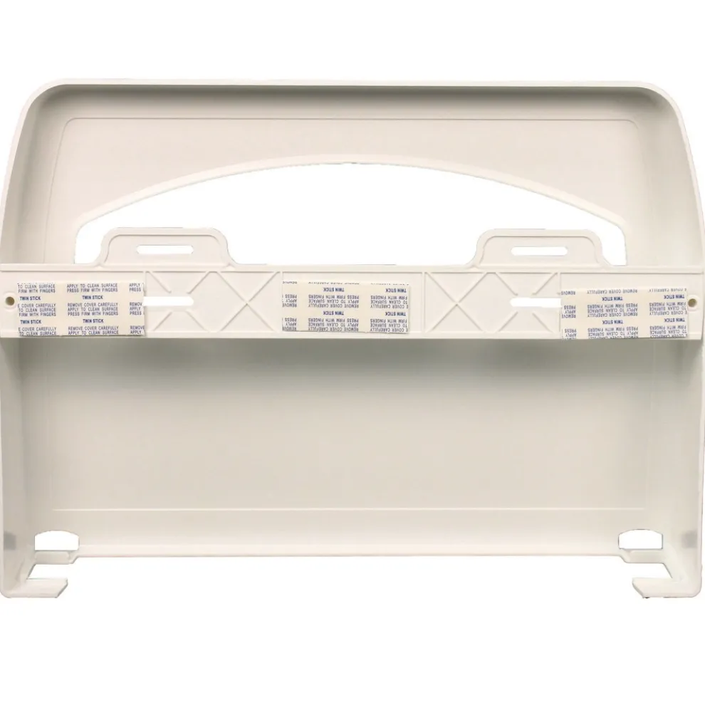 Made from plastic for durability while remaining lightweight. May be mounted by two-way tape or screws to fit most washroom needs. Capable of holding up to two packs of 250 half-fold toilet seat covers.