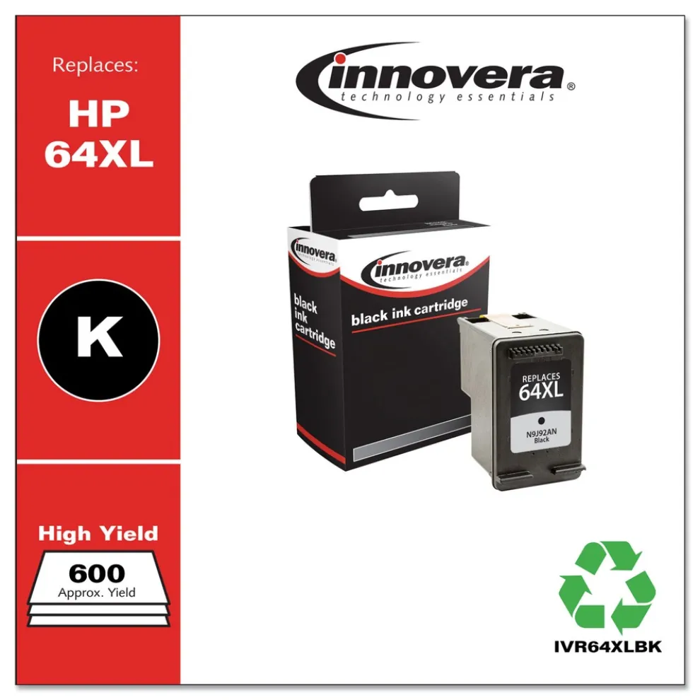 Innovera IVR64XLBK 600 Page-Yield Remanufactured High-Yield Ink Replacement for 64XL (N9J92AN) – Black