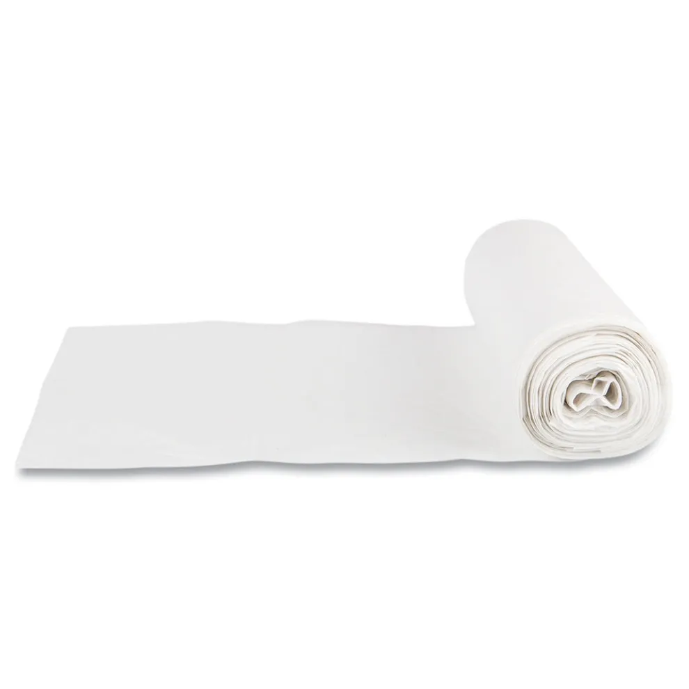 (50 Bags/Roll, 20 Rolls/Carton) 10 Gallon 0.35 mil 24 in. x 24 in. Coreless Perforated Roll Low-Density Commercial Can Liners – Clear – SL2424LTN