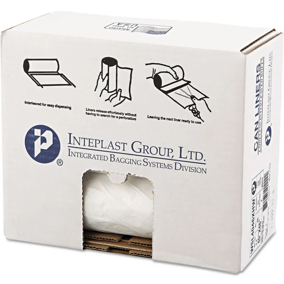 Inteplast Group WSL4046XHW 45 gal. 0.8 mil 40 in. x 46 in. Low-Density Commercial Can Liners – White (25 Bags/Roll, 4 Rolls/Carton)