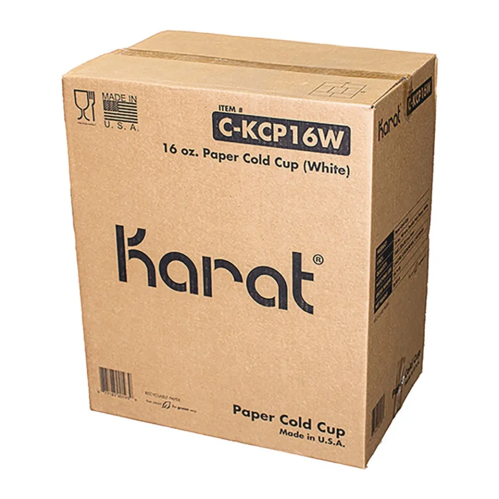 Karat paper cold cups are protected with a double poly lining both inside and out. The cups have rolled rims with a smooth exterior finish. The interior lining keeps your drink in the cup, and the exterior lining protects against condensation.