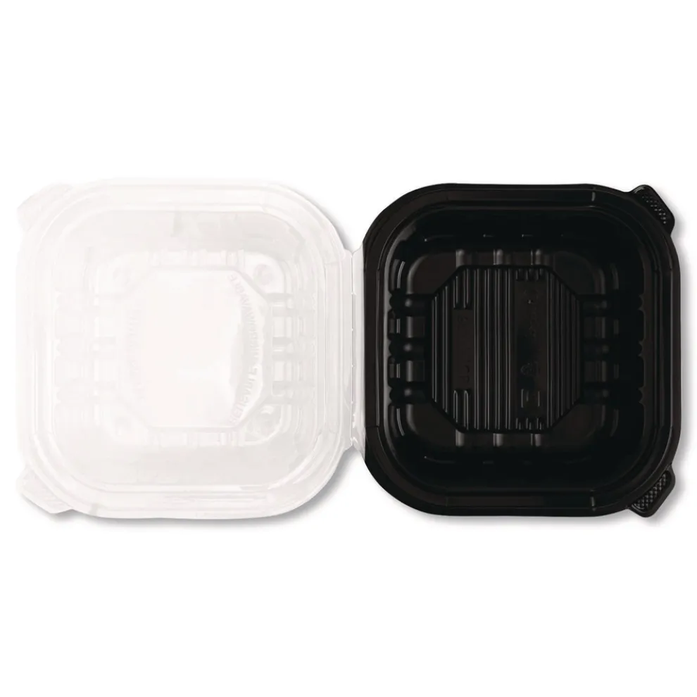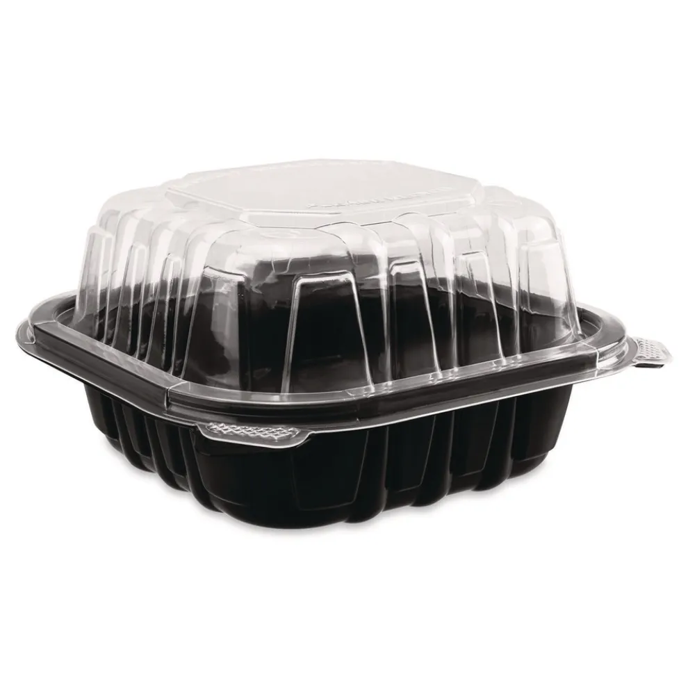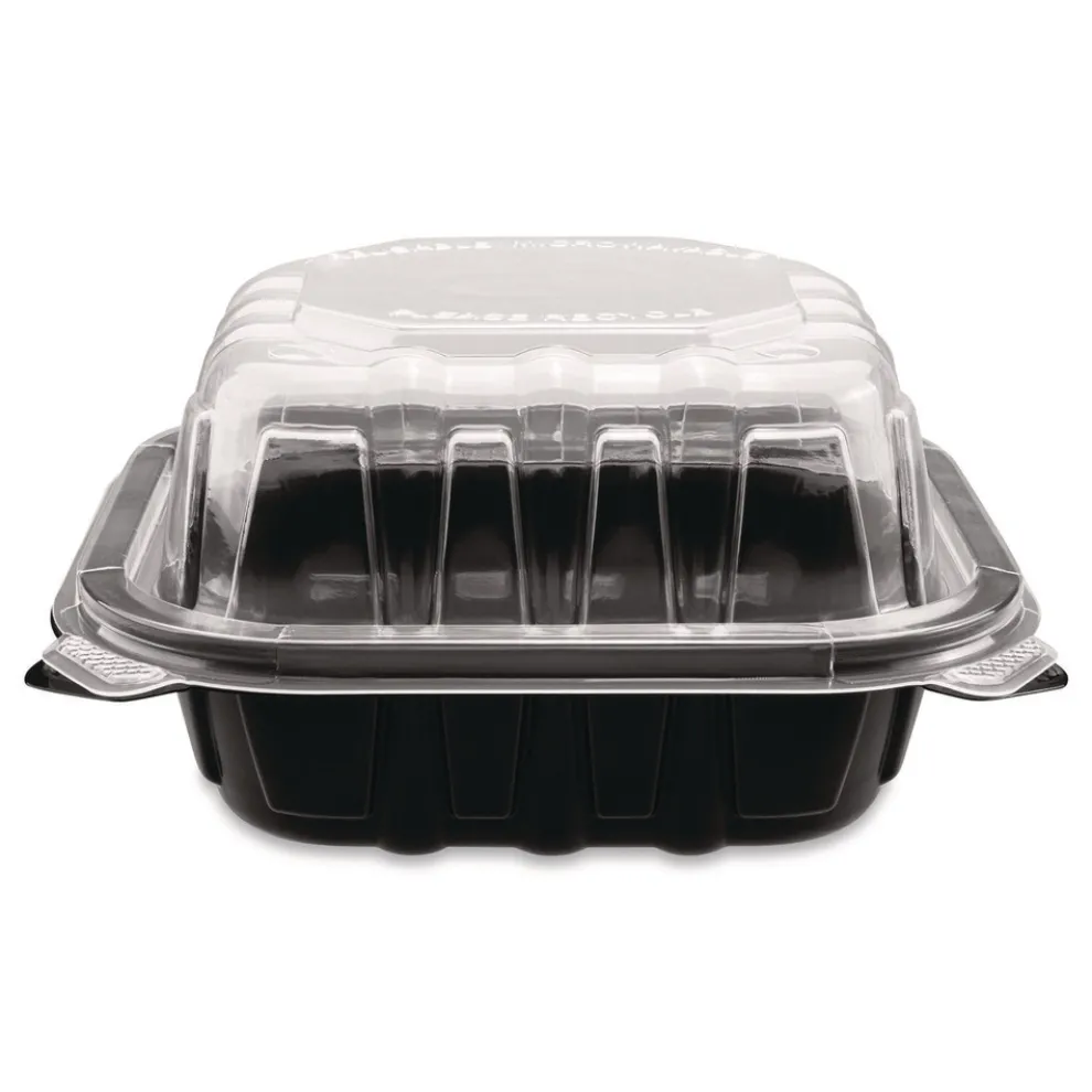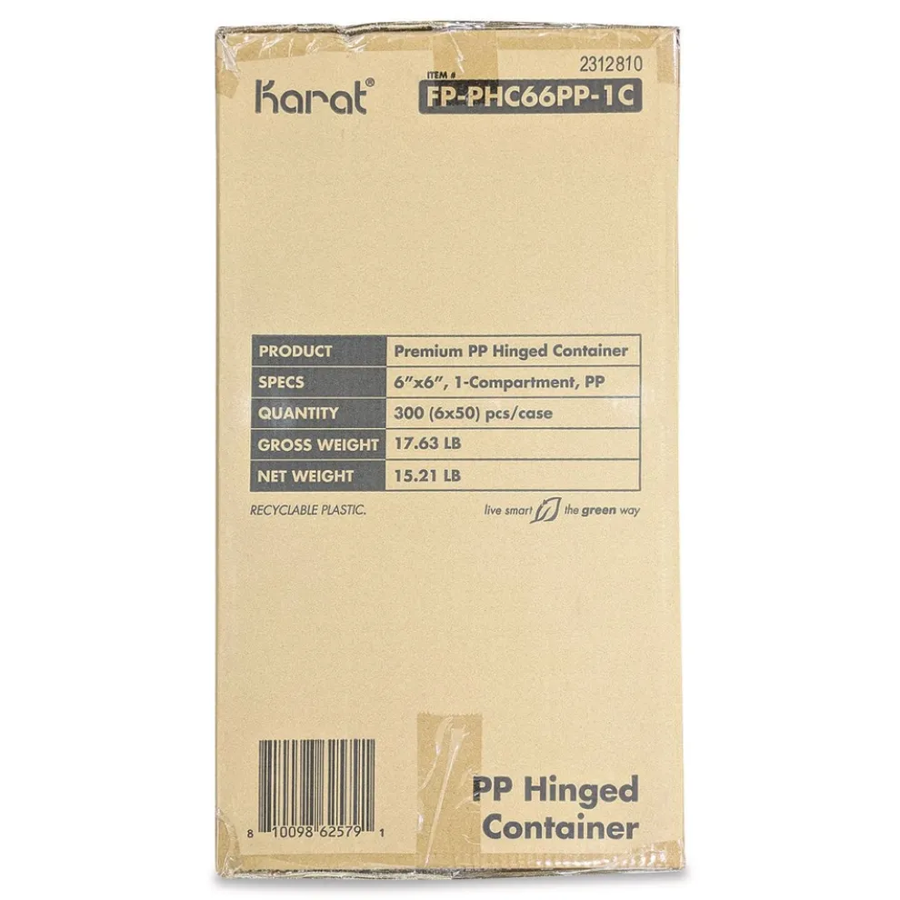 Karat FP-PHC66PP-1C Polypropylene Plastic Hinged Container 6 x 6 x 3 Black/Clear Plastic 50/Pack 6 Packs/Carton