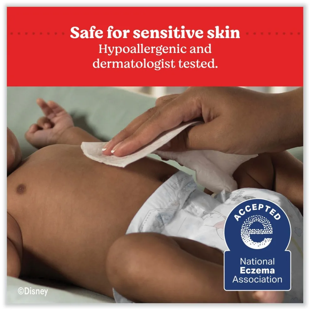Huggies Natural Care Sensitive Baby Wipes are plant-based wipes, made with 99% purified water and 1% skin essential ingredients for a gentle clean. Infused with aloe and vitamin E, the unique base sheet locks-in and absorbs the mess to help keep baby’s skin clean and moisturized. Safe for sensitive skin with no harsh ingredients, Huggies Natural Care unscented diaper wipes are hypoallergenic, dermatologically tested and pH-balanced to help maintain healthy skin. The wipes are fragrance free, alcohol free, paraben free and do not contain phenoxyethanol or MIT, earning these diaper wipes the National Eczema Association’s seal of approval. Huggies Natural Care unscented baby wipes are extra soft and gentle, making them ideal for sensitive newborn skin. Plus, with EZ Pull 1-Handed Dispensing, it is easy to grab wipes without wasting sheets!