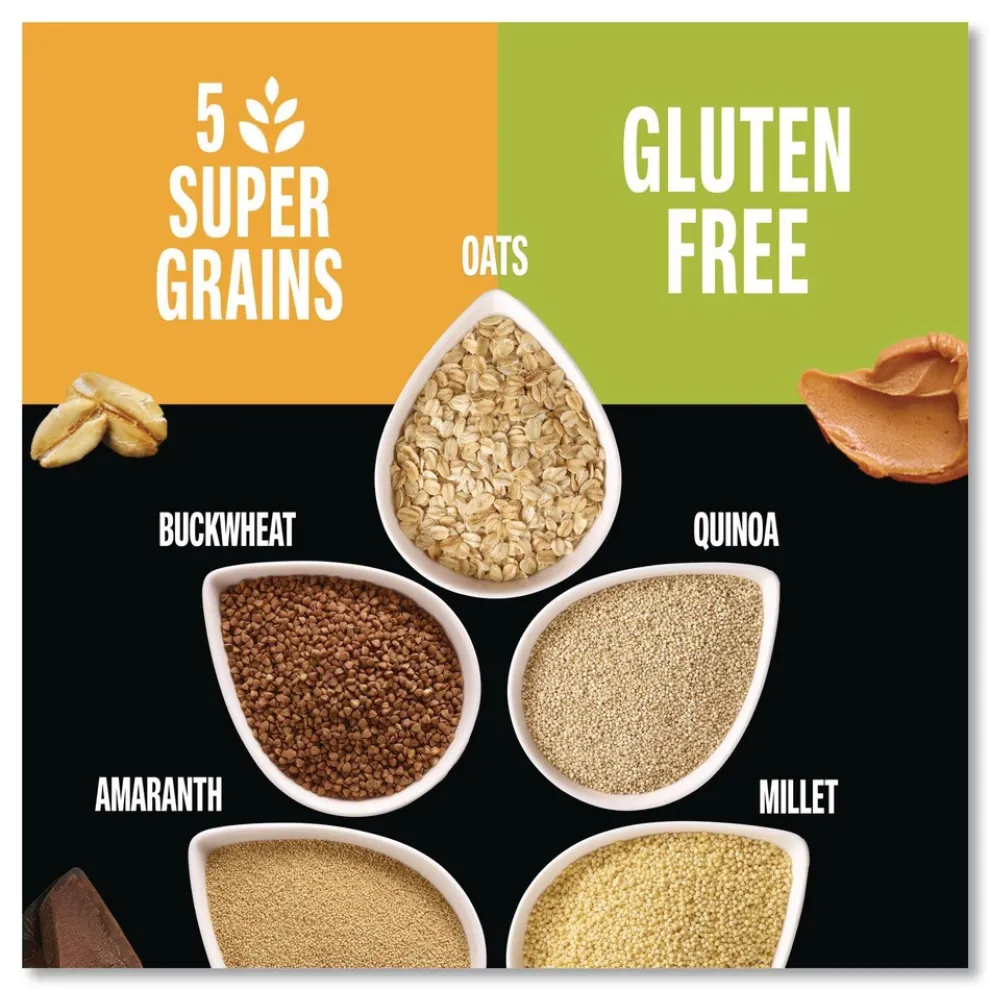 Made with creamy peanut butter, chocolate chunks and five super grains: oats, millet, buckwheat, amaranth and quinoa
