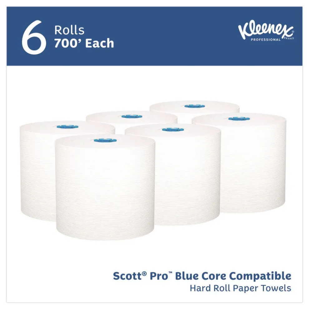 Kleenex (formerly Scott Pro Plus) provides state of the art solutions to maximize productivity. You can trust Kleenex Hard Roll Paper Towels, with premium Absorbency Pockets, to provide efficient, reliable hand-drying for your washroom or breakroom. These fast-drying Absorbency Pockets mean that users will need fewer towels to dry their hands. The result? More towels left in the dispenser, more times between refills and less paper waste. These paper towels are exclusively compatible with the Dispenser system (grey-colored cores), which can adapt to suit your needs. Drying is one of the most important steps in the hand washing process, and how you dry matters. Providing high-quality Kleenex Hard Roll commercial paper towels to your guests, clients and employees is one important piece of the workplace hygiene puzzle.