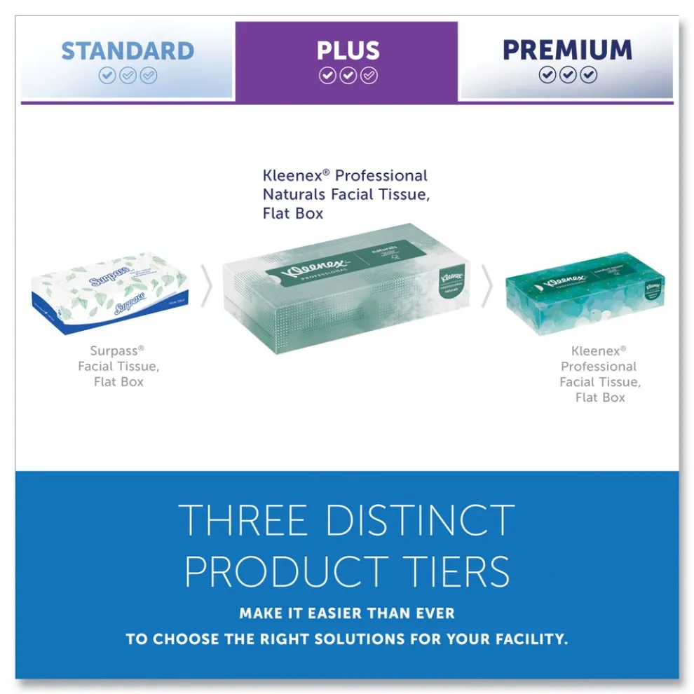 More than ever, hygiene plays a significant role in employee, guest, and tenant comfort and satisfaction. More people choose Kleenex Facial Tissue than any other brand, proving that all facial tissues are not created equal. Kleenex Naturals tissues offers superior performance, a premium feel and essential softness, created with a blend of virgin fiber and recycled fiber. When your employees, clients and visitors see the respected Kleenex brand in your offices and restrooms, they’ll know that you select quality products, putting forth the best image for your business. For more than 90 years, Kleenex has delivered the highest quality among facial tissues, providing consumers with smart innovations like an ultra-soft texture and a low-alert dispenser (the last 10 tissues are cream colored instead of white, so you know it’s almost time for a new box). Choosing Kleenex lets everyone know that you care enough to provide the very best. You’ll want to buy them in bulk!