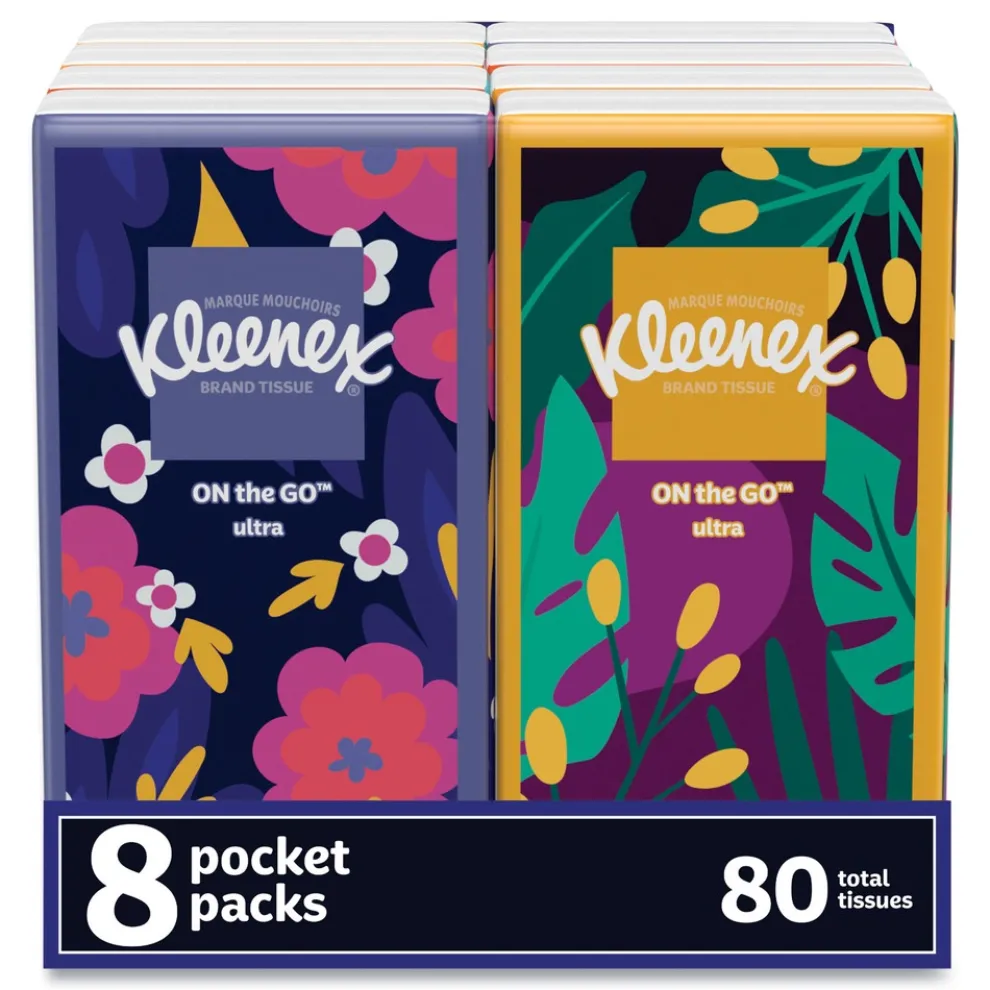 Kleenex 46651 3-Ply On The Go Packs Facial Tissues – White (12 Packs/Carton)