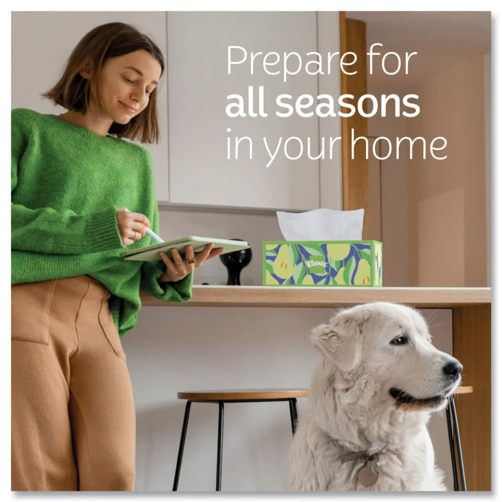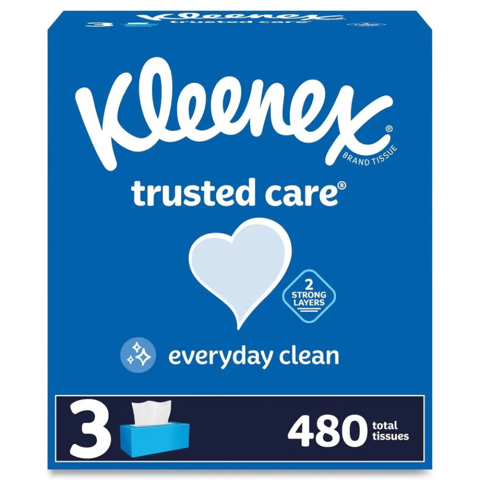 America’s favorite tissue, Kleenex Trusted Care is perfect for everyday sniffles, sneezes and even little drips or spills! Whether you’re looking for a box for your home or office you’ll have plenty of single tissues for any occasion. Designed for runny noses and watery eyes, our dye-free, soft and strong tissue is thick and absorbent to keep hands clean. Plus, you can find tissue boxes that fit your style because each tissue box is available in various colors and designs.