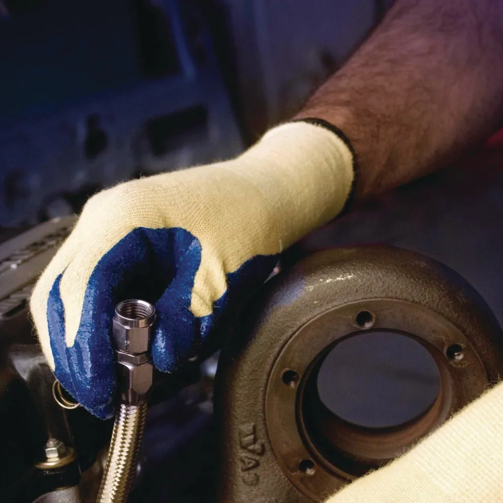 (12 Pairs/Pack) G60 Nitrile Coated Cut Resistant Gloves – Large, Blue/Yellow – 98232