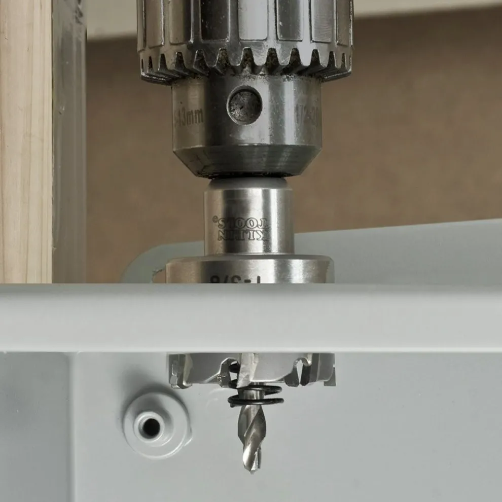 This carbide hole cutter cuts quick, precise holes in a variety of materials. Integrated flange prevents the operator from drilling beyond the sheet metal. Split point pilot drill bit prevents bit walking.