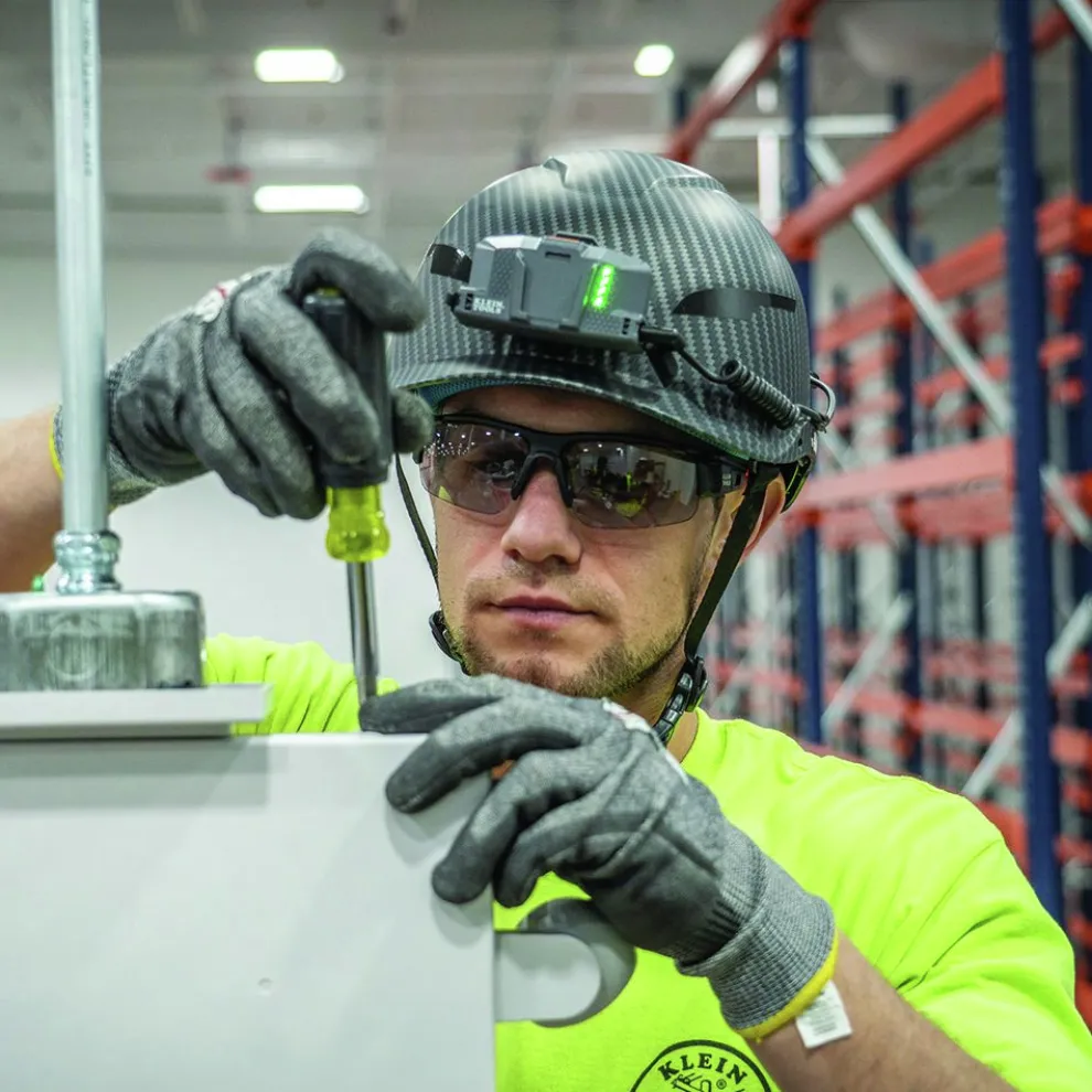 Patent-pending accessory mounts on front and back ensure Klein Headlamps and other accessories attach securely and precisely every time; no straps or zip ties needed