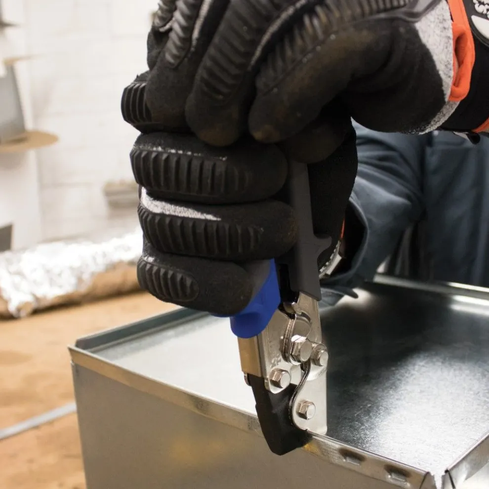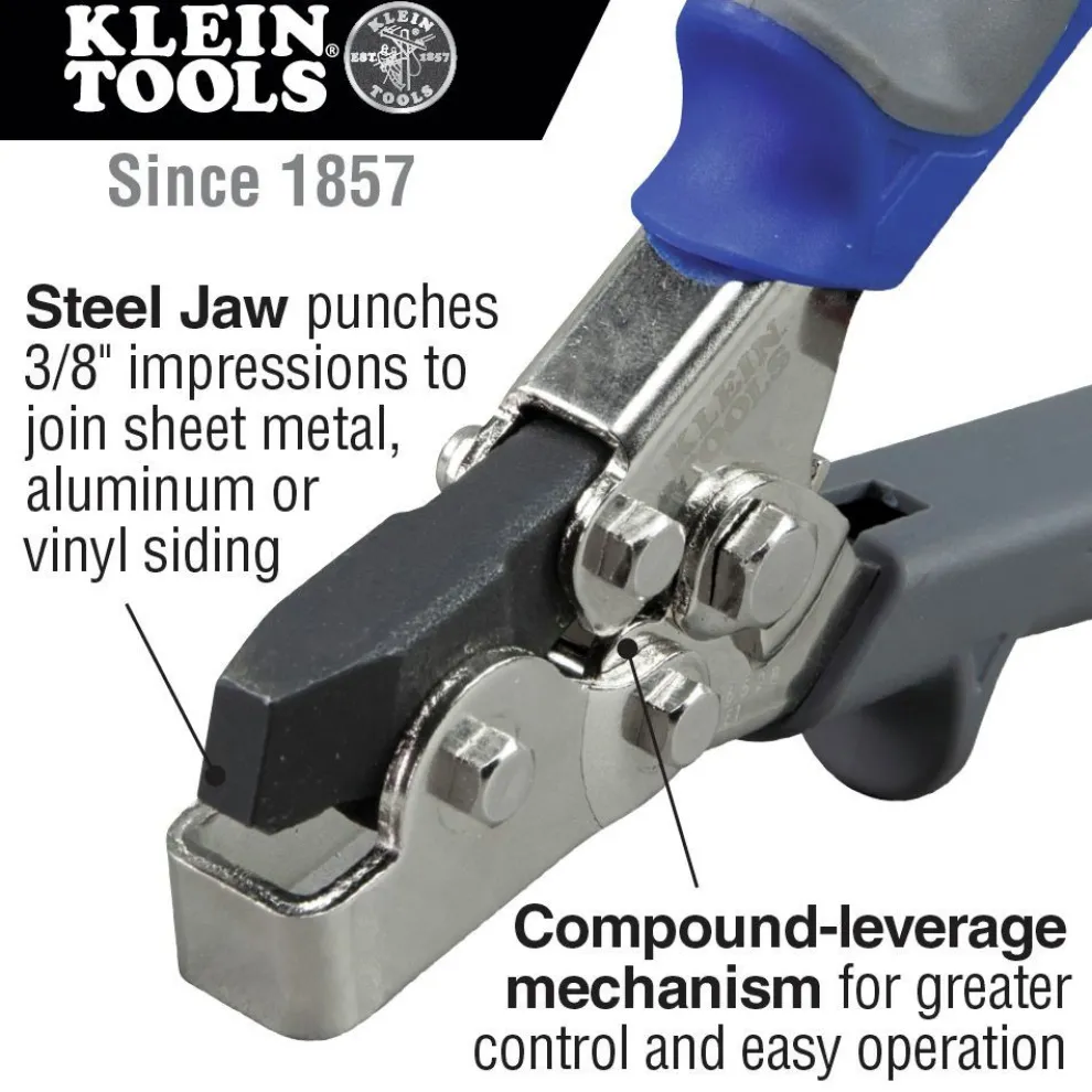 Drop-forged steel jaw easily punches 3/8 in. (1 cm) wide impressions on metal edges to easily join pieces of sheet metal, duct or pipe