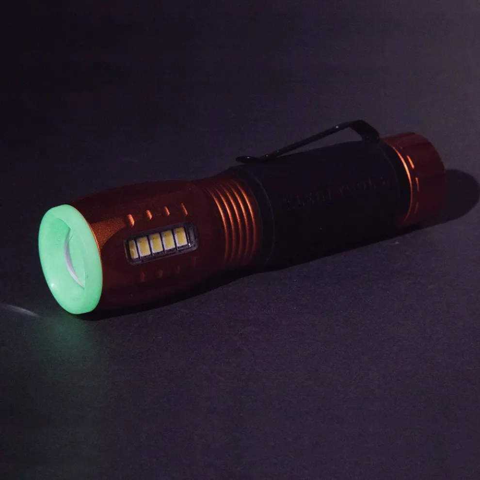 Glow ring tip charges while the light is on and allows for easy retrieval in the dark and in your tool bag