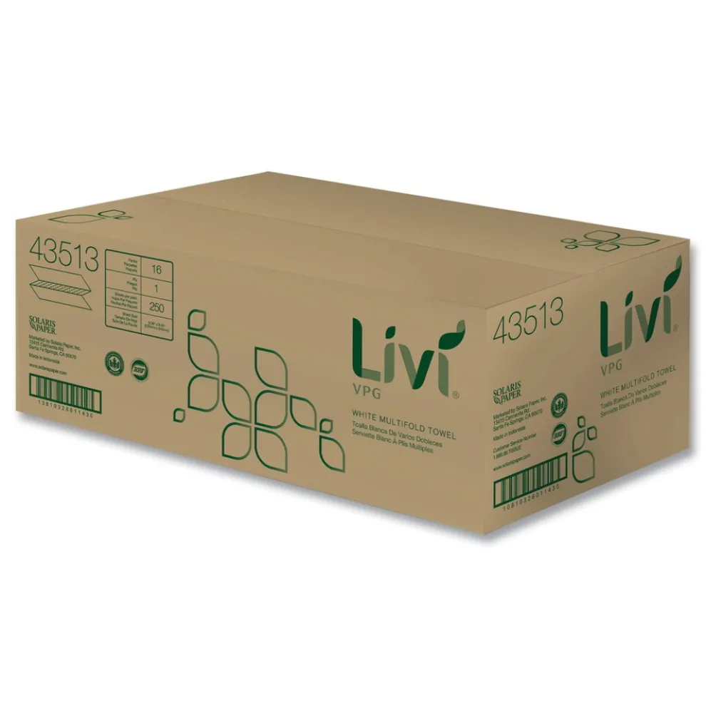 Solaris Paper presents the Livi VPG MultiFold Towela testament to affordability, quality, and practicality. Our multifold towel features crisp embossing and improved hand-feel texture add a touch of luxury to your facilities. The Livi VPG family stands as the epitome of reliability and economic value. When seeking a worry-free solution that just makes sensechoose Livi VPG, where affordability meets excellence.