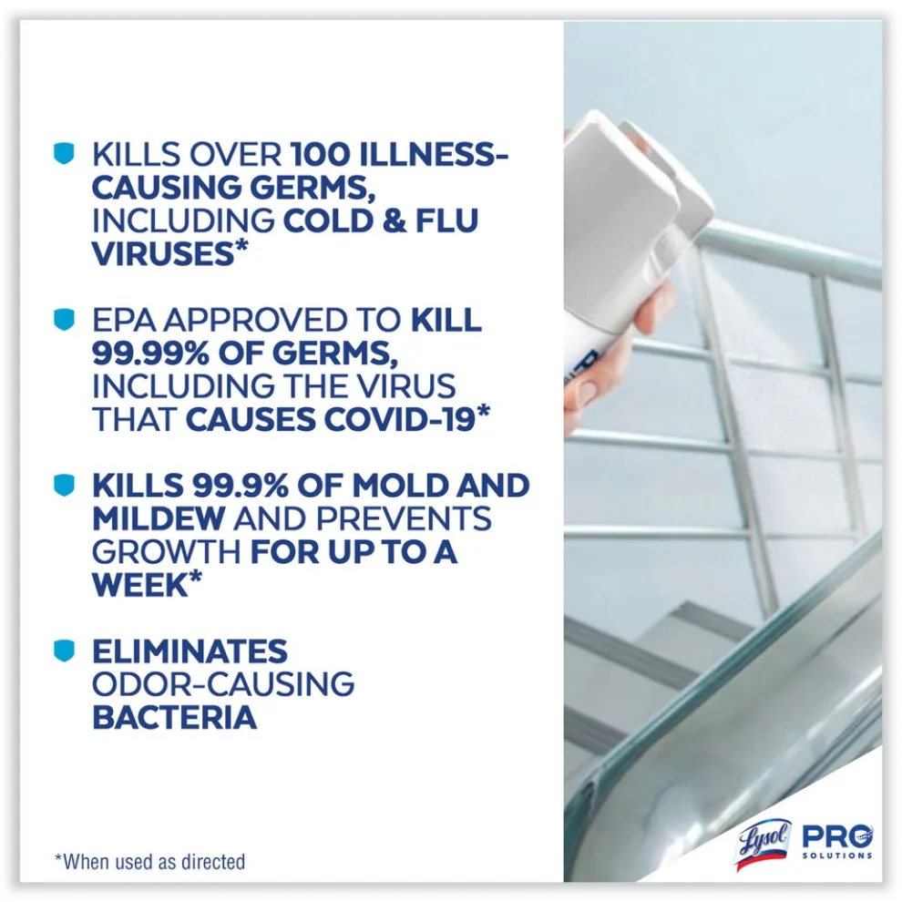 Get maximum versatility with minimal effort with Lysol Disinfectant Spray that’s safe to use on hard and soft surfaces. Lysol kills 99.9% of viruses and bacteria, including the virus that causes COVID-19 in 15 seconds, as well as cold and flu viruses when used as directed. Help protect high-traffic areas and high-touch surfaces, including desks, bathrooms, doorknobs, and railings. Deliver hospital-type disinfection on to soft surfaces, including upholstery, curtains, sofas, mattresses, and cushions. Meet customer and staff expectations around disinfection. Simply spray and let air dry.