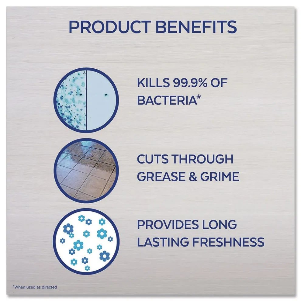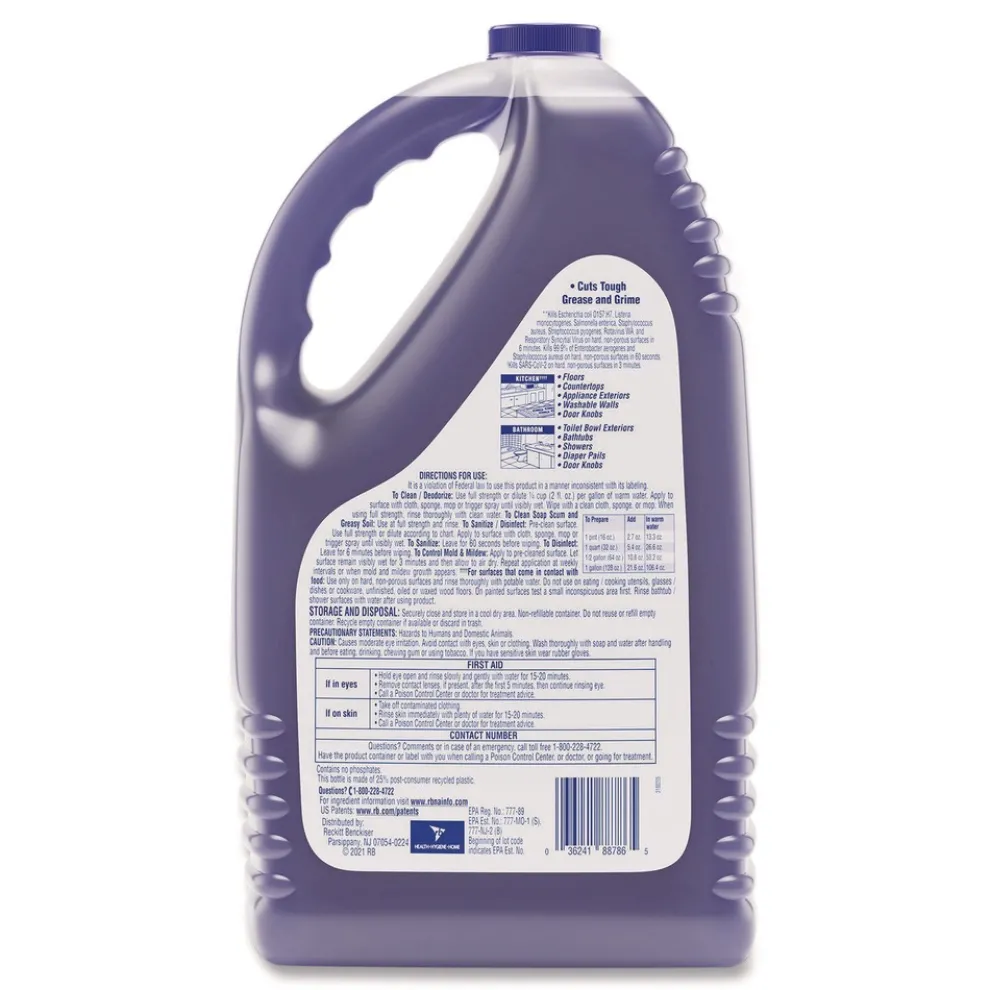 Help protect your workplace against viruses and bacteria with the versatile, concentrated Lysol Pourable Multi-Surface Cleaner. When used as directed, this broad-spectrum disinfectant kills germs, including cold and flu viruses, RSV, E. coli, Salmonella, and the virus that causes COVID-19, when used at full strength or diluted on hard, non-porous surfaces. Give cleaning crews the ability to cut through tough grease, grime, soap scum, and daily messes with a multi-surface formula that works in spray bottles and mop buckets and can be used without dilution. Clean high-touch surfaces in breakrooms, classrooms, guest and resident rooms, manufacturing areas, and workspaces with a disinfectant, restroom cleaner, and floor cleaner in one. Deliver a pleasant scent in the area where it is used.