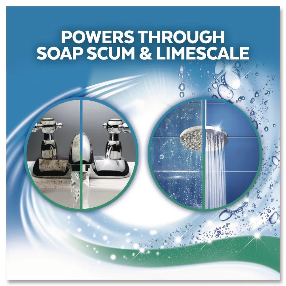Hydrogen peroxide formula releases thousands of micro bubbles that penetrate to dissolve soap scum and lime scale.