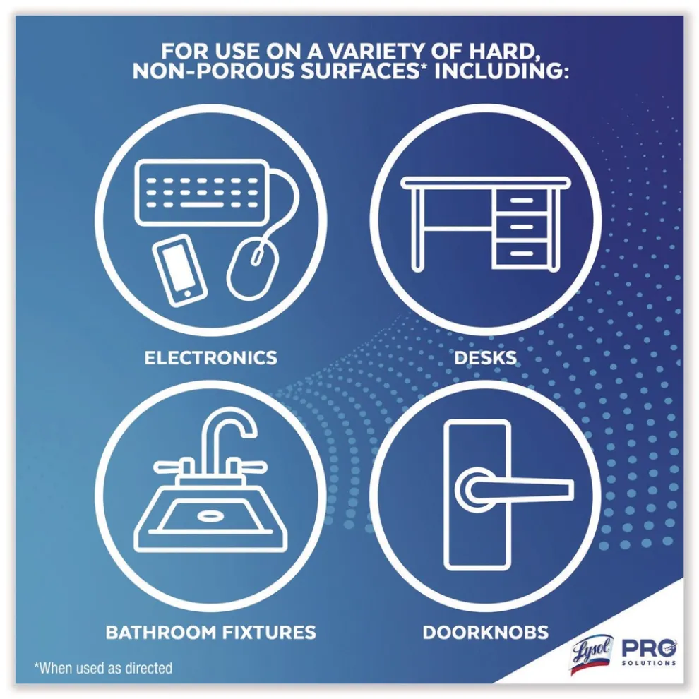Optimize cleaning with high-capacity Lysol Professional Disinfecting Wipes that help you meet high-volume needs and reduce restock times for cleaning supplies. Pre-moistened disinfecting wipes kill 99.9% of viruses and bacteria, including the virus that causes COVID-19 when used as directed on hard, non-porous surfaces. Hospital-type disinfection works on a variety of surfaces, including electronics. Quickly clean and disinfect high-touch germ hot spots to help protect your customers and staff. Clean up and keep moving with packaging that’s easy to open, dispense, and store.